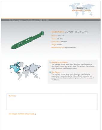 Številni SolidWorksovi uporabniki, ki so že spoznali novi modul, ugotavljajo njegovo vrednost, saj je trajnostno načrtovanje vse pomembnejše na vseh področjih. Večina poskuša ustvarjati okolju prijazne izdelke in rešitve ter tako ali drugače zmanjšati onesnaževanje našega planeta. DS SolidWorks je zato v sodelovanju s podjetjem PE International ponudilo orodje za analizo in optimizacijo obremenjevanja okolja. PE International je med vodilnimi v razumevanju trajnostnega razvoja in izdelavi okolju prijaznih izdelkov, saj ima več kot 20-letne izkušnje zbiranja in analiziranja podatkov o izdelkih in njihovi obremenitvi okolja (med reference se uvrščajo podjetja Alcan, Allianz, Bayer, Daimler, Deutsche Post/DHL, Rockwool, Siemens, Toyota, ThyssenKrupp in Volkswagen). Rezultat sodelovanja je modul, ki bo uporabnikom omogočal, da enostavno analizirajo obremenitev okolja za različne vrste materialov in izdelave.