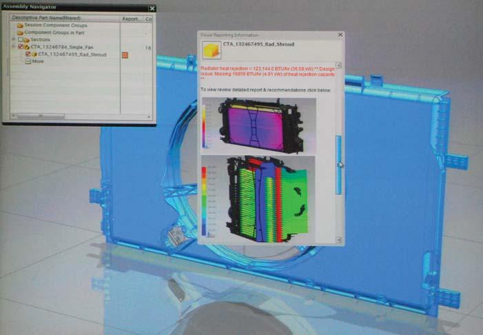 izračunamo. Tako npr. lahko znotraj sklopa preverimo težo posameznega dela, ki je od drugega dobavitelja, in pri tem preverimo, ali je zaradi teže tega dela sklop pretežak. Informacija o teži se izračuna znotraj CAD-sistema in prikaže ob obravnavanem delu ter tako olajša iskanje te informacije in pomaga pri odločitvah pri načrtovanju. Informacija, za katerega dobavitelja dela gre, pa pride iz Teamcentra. Na tem primeru se vidi združitev informacij iz obeh sistemov.