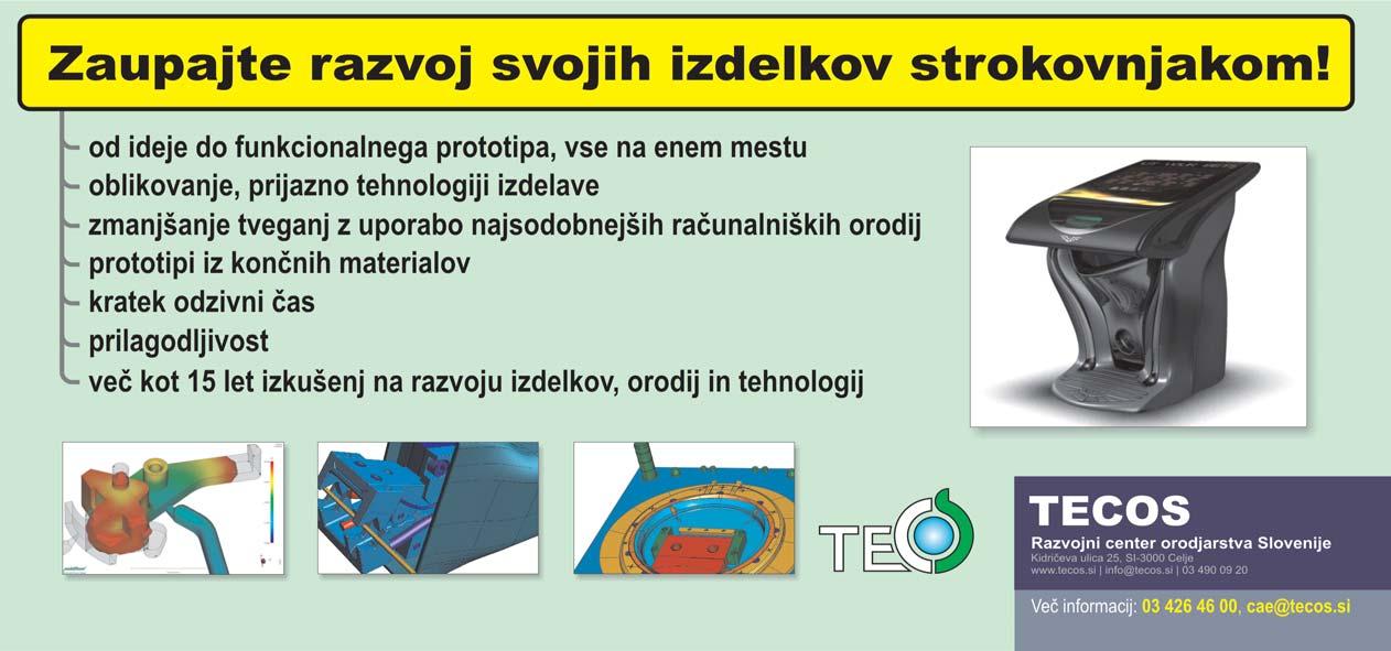 EuroMold 2010: dobra mednarodna udeležba in odlična poslovna klima Sejem EuroMold 2010 je že sedemnajstič potekal v frankfurtskem sejemskem središču, od 1. do 4. decembra 2010. Letošnji EuroMold je obiskalo približno 60 000 obiskovalcev, ki so na površini več kot 65 000 m2 lahko uživali v zanimivih razstavnih prostorih 1384 razstavljavcev iz 38 držav sveta ter na številnih dodatnih prireditvah (konference, forumi). Rahlo okrevanje industrij, ki so bile zastopane na sejmu EuroMold ter se nanašajo predvsem na razvoj in proizvodnjo izdelkov in orodjarstvo, smo lahko zasledili tudi s povečanjem števila razstavljavcev v primerjavi s prejšnjim sejmom (EuroMold 2009), kar znaša 2,2 odstotka. Tudi delež tujih (nenemških) razstavljavcev se je povečal za 2,5 odstotka, pri čemer je bila v ospredju Kitajska s celo 124 razstavljavci. Slovenijo sta zastopali dve podjetji, Kolektor in Metal Ravne.