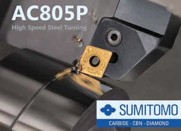 Sumitomo je predstavil novo kvaliteto za visokohi trostno fino struženje jekla AC805P. Debelejši nanos aluminijaste prevleke zagotavlja pri suhi obdelavi in hitrosti, večji od 300 m/min, odlično obrabno odpor nost.