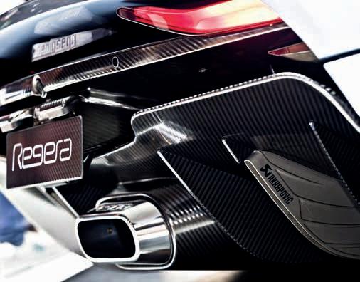 Specialist za zmogljive izpušne sisteme Akrapovič se je znova izkazal. V manj kot pol leta je razvil in ulil izpuh za prestižno vozilo Koenigsegg regera. Gre za najmočnejši hibrid na svetu, kjer 1100 bencinsko gnanih konjskih moči dodobra rohni skozi izpuh, kadar se igla merilnika vrtljajev dviga proti mejni vrednosti.