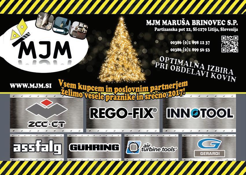 Profesionalna oprema za industrijo · Varilna tehnologija in varilni aparati · Dodajni materiali za varjenje · Orbitalno varjenje · Avtomatizacija in robotizacija varjenja · Industrijski odsesovalni sistemi · Hitro zaporne spojke IPRO ING d.o.o., Brnčičeva 9, 1231 Ljubljana - Črnuče Tel.: 01 56 11 045 • info@ipro.si • www.ipro.si 66 Platforma inovacij in investicij za kovinsko obdelovalno industrijo “Pametni” brizgalni stroji Enostavna in prilagodljiva avtomatizacija notranjega transporta December • 66 (6/2016) • Letnik 11 Cena 5 € • ISSN 1854-3669