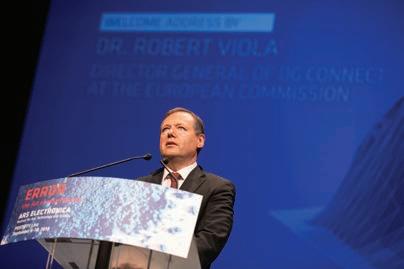 » Dr. Roberto Viola, znanstvenik, izumitelj, pedagog, pianist in generalni direktor DG Connect pri Evropski komisiji ob uvodnem nagovoru na konfe renci z naslovom Umetna inteligenca v umetnosti in znanosti – strategije za odgovorne inovacije na Festivalu Ars Electronica 2019 osredinil: »Imate nekakšen trikotnik med ljudmi, tehnologijo in umetnostjo. To je nekaj, česar ne morete ločiti. Gre pravzaprav za enovito zadevo. In tako je bilo vselej v zgodovini človeštva.« | Foto: vog.photo