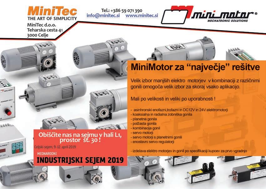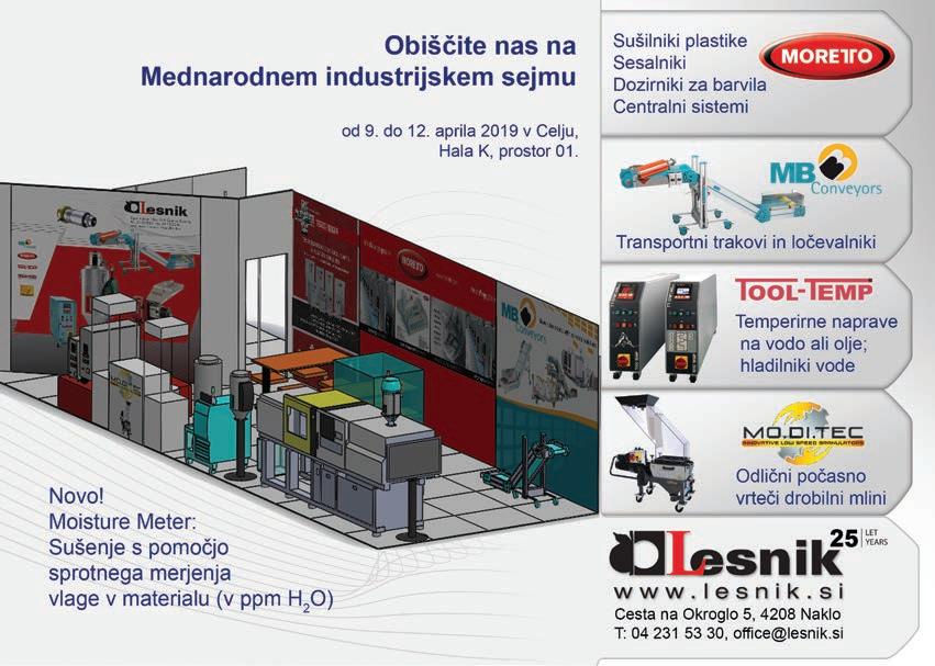 Industry fair 2019 09.-12.04.2019 hala K, razstavni prostor 31 Celje, Slovenia ROAD TO DIGITALISATION REALIZATORJI VODJE PIONIRJI ZASTAVLJAVCI CILJEV USTVARJALCI PRIHODNOSTI PARTNERJI Road_to_digitalisation_IRT3000_210x148_Maerz_SL_Titelseite.indd 1 18.01.2019 10:03:43 Marec • 87 (3/2019) • Letnik 14 Cena 5 € • ISSN 1854-3669 Štiri celovite procesne verige za tehnologijo prašne postelje in šobe za prah 3.200-tonska brizgalka za 45-kilogramske brizgance za gradbeno industrijo Za 25 odstotkov krajši pretočni časi z virtualno obdelavoveščin robotov87 MAREC Industrijski sejem 2019 09 12 04 2019 hala K, razstavni prostor 31 Celje Slovenia