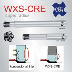 Japanski proizvođač OSG je napravio novu seriju TM glodala WXS-CRE sa velikim rubnim radijusom. Glodala su presvučena s WX Super presvlakom, kojoj je oksidacijska temperatura 1.300 ºC. Glodala imaj pet oštrica i pozitivan rezni kut. To omogućuje 25% više režime i veću učinkovitost od prethodne serije WX. Glodala su namijenjena za glodanje tvrdih materijala do 65 HRc sa vrlo velikim posmacima.