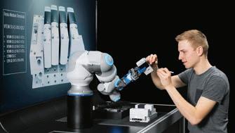 »U sljedećim godinama industrijsku automati zaciju će obilježiti dvije tematike: digitalizacija proizvodnog procesa i suradnja između čov jeka i robota,« pojašnjava Henrik A. Schunk, generalni izvršni direktor u tvrtki SCHUNK GmbH & Co. KG iz gradića Lauffen am Neckar, koji se referira na sajam AUTOMA TICA 2018.