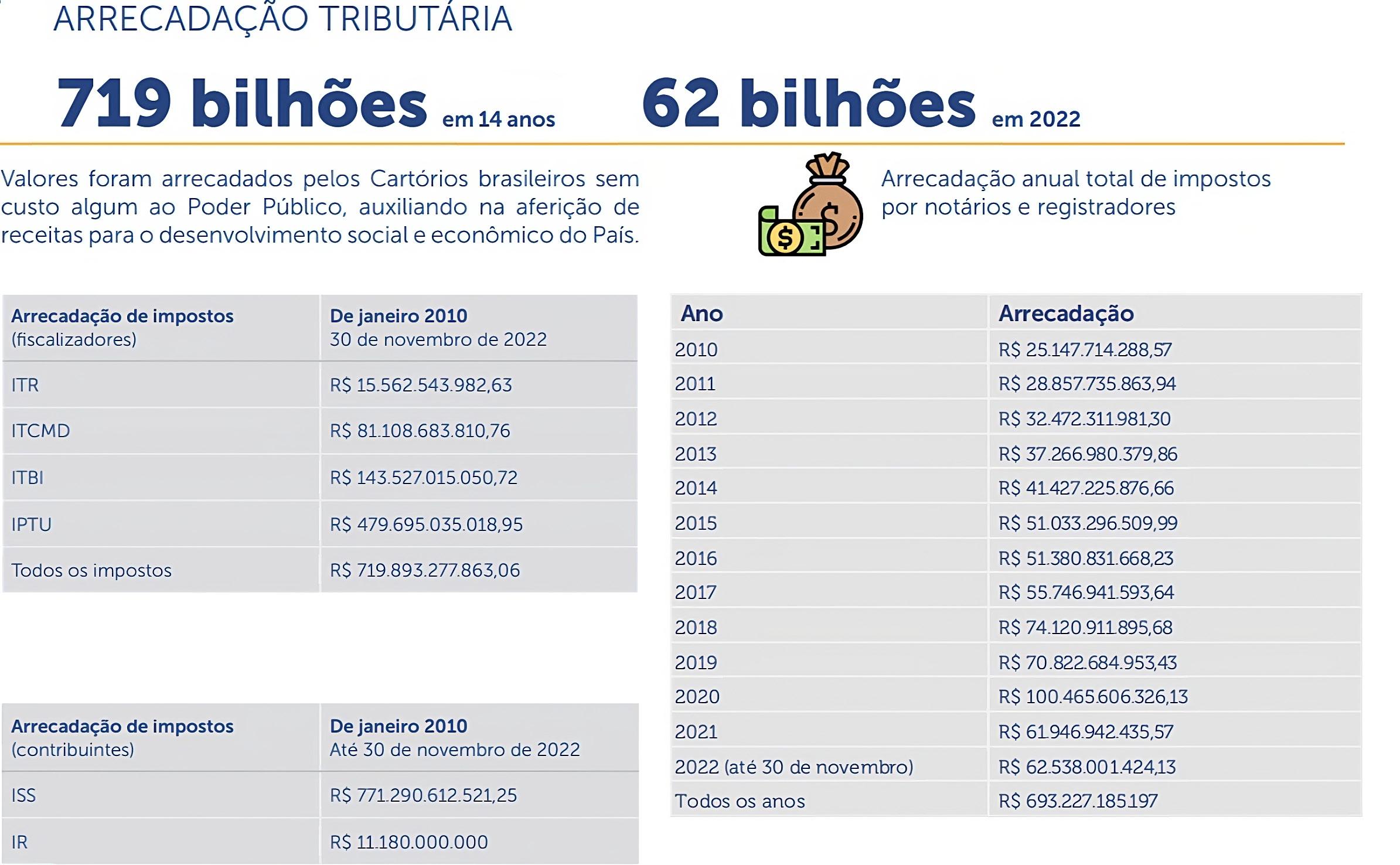 Os cartórios são, na verdade, importantes fontes de arrecadação tributária. Veja abaixo: