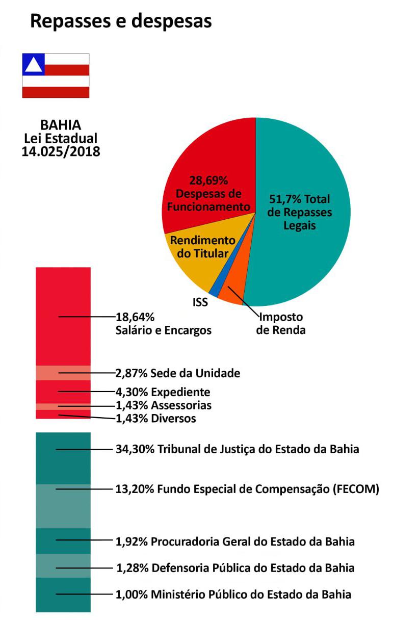 O percentual dos repasses varia de estado para estado. Observe o exemplo da Bahia no gráfico ao lado.
