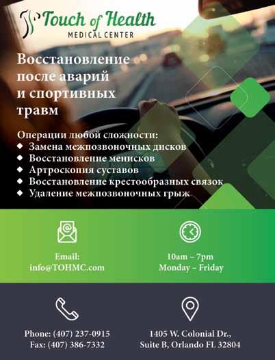 тивлением – терапию, в которой основное внимание уделяется миофасциальной системе организма. Мы единственный центр во Флориде с такой методикой. Информация о травме регистрируется и «сохраняется» в нашем теле – и прежде всего в миофасциальной системе. Фасция — это своего рода сеть, похожая на паутину, которая соединяет все и вся внутри нас. При травмировании миофасциальная ткань человеческого организма может или растянуться или сжаться, напрячься, потерять эластичность, качество и функциональность. Пострадавший начинает компенсировать в биомеханике движения, что создает экстранапряжение. Движения становятся слишком фрагментарными, человек перестает использовать свое тело полноценно. С помощью терапии растяжения с сопротивлением мы находим, в каких тканях происходит компенсация, и помогаем восстановить их функции, мобильность и оптимальную подвижность. Этот метод восстановления работает быстрее всех остальных.