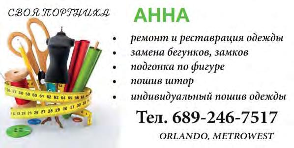 продажа рекламы: Iryna Nasekailo Address: PO Box 3356 Windermere, FL 34786-3356