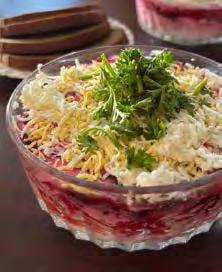 5. Выбираем посуду для салата, прозрачную, если есть, и начинаем выкладывать все слоями: выложить половину картофеля, сверху промазать его майонезом; далее — половину моркови, промазать майонезом; половину свеклы, промазать майонезом; всю селедку с луком и дальше выкладывать слои из овощей в таком же порядке.