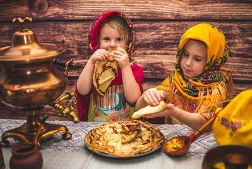 задором учились танцевать кадриль. Веселье не ограничивалось сценой — каждый гость становился участником праздника: взрослые и дети водили хороводы вокруг чучела Масленицы, перетягивали канат, играли в импровизированные снежки и другие масленичные забавы, организованные Натальей Мун. За угощение отвечала Татьяна Рони, а Виктория Пеппард не только составила праздничную программу, украсила зал, но и испекла сто блинов! С пылу с жару, с разными