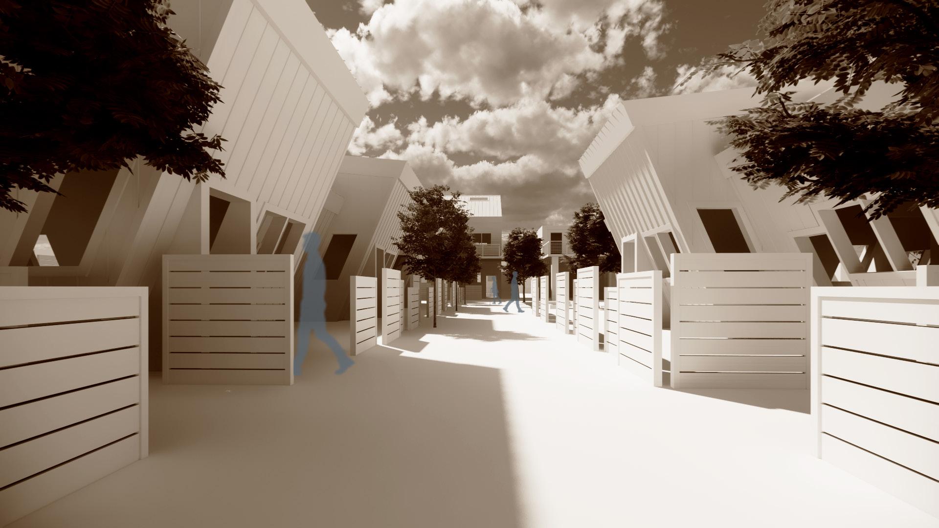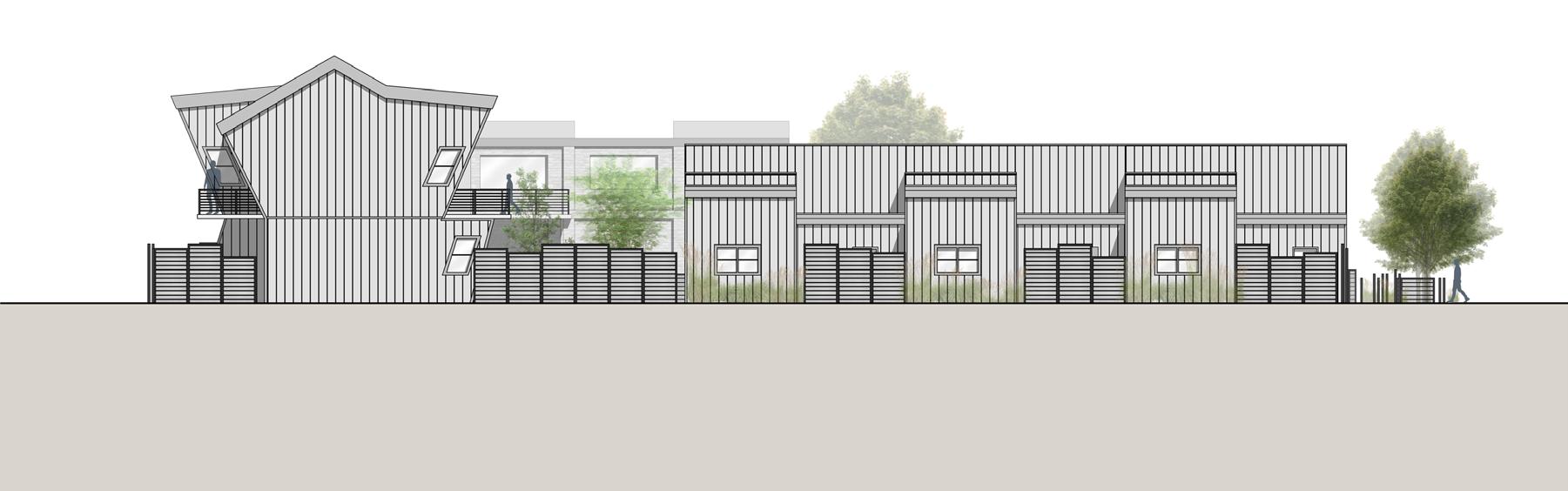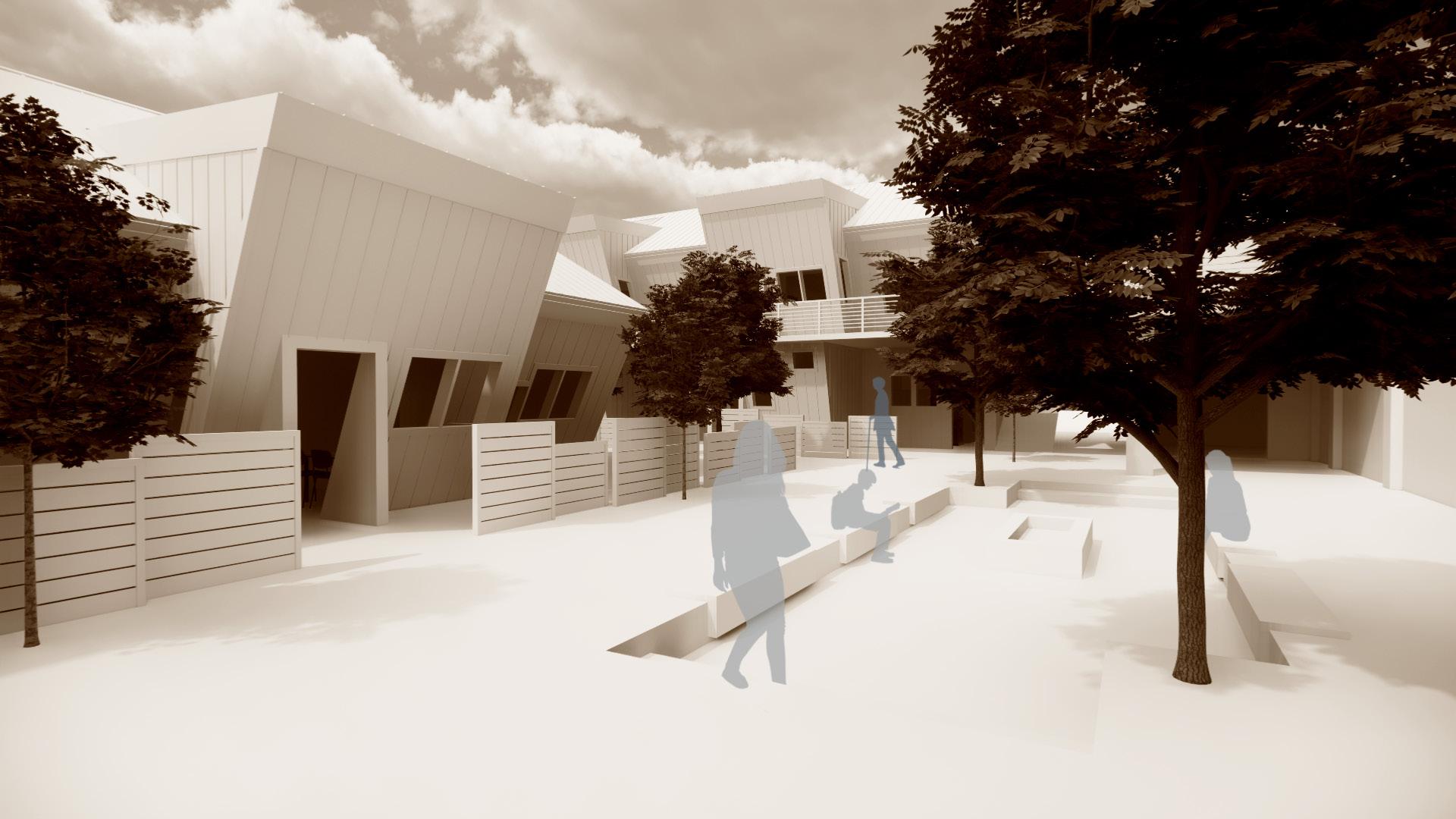 The Eureka Housing Project intentionally aims to create a community of engagement by providing a communal courtyard and bookstore with a mini-cafe to promote community interaction. The Eureka Housing Project provides a sense of privacy and community in each unit by allocating private outdoor space.