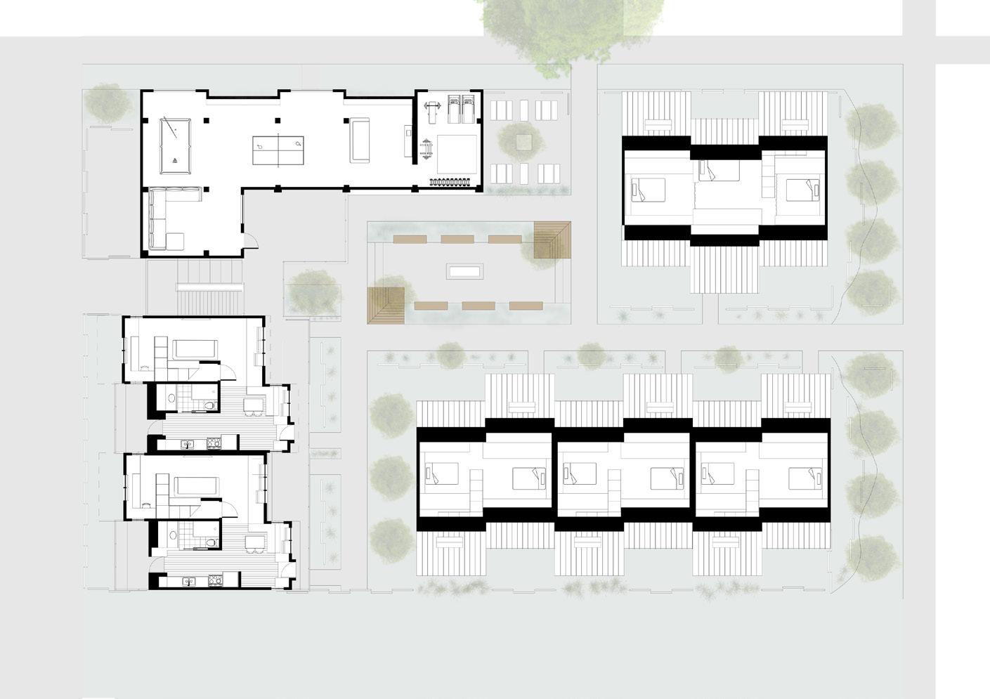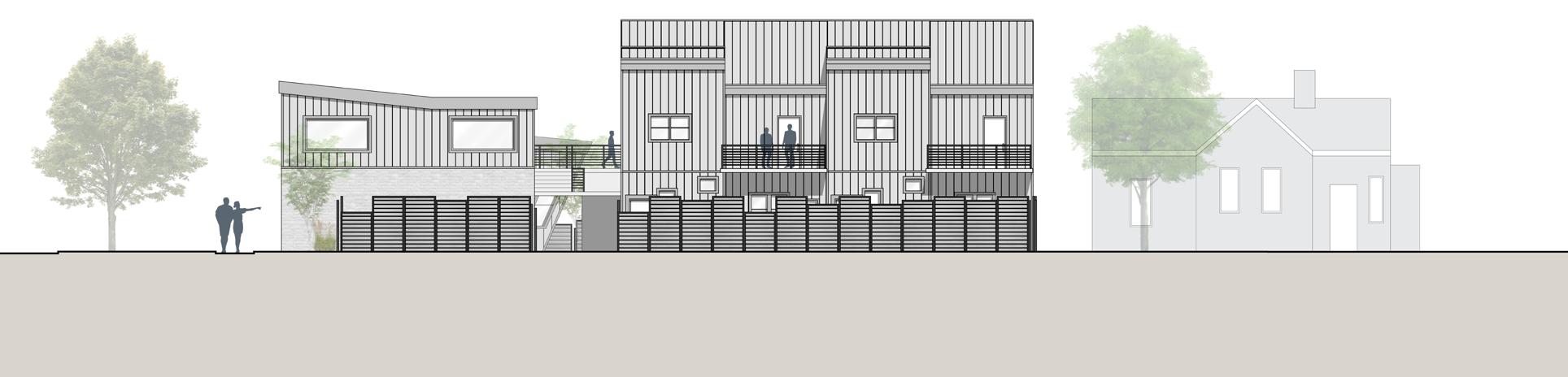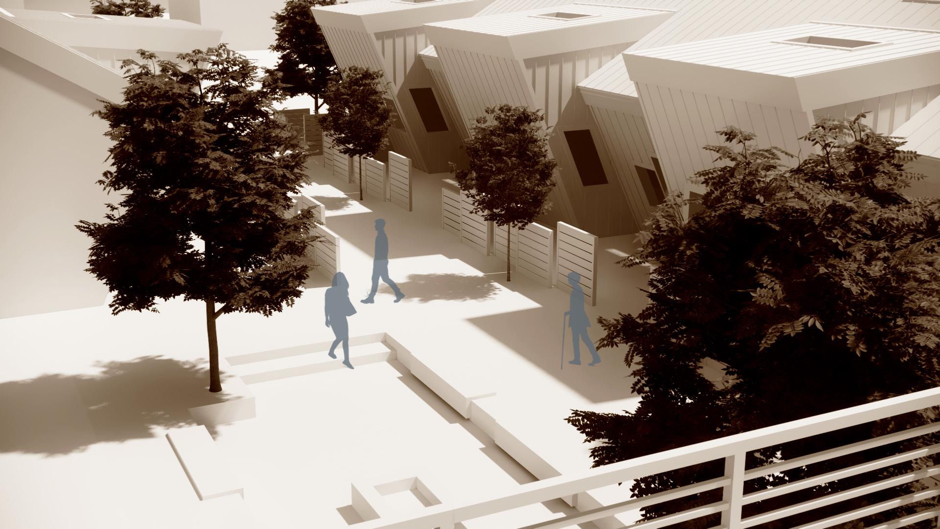 The Eureka Housing Project intentionally aims to create a community of engagement by providing a communal courtyard and bookstore with a mini-cafe to promote community interaction. The Eureka Housing Project provides a sense of privacy and community in each unit by allocating private outdoor space.