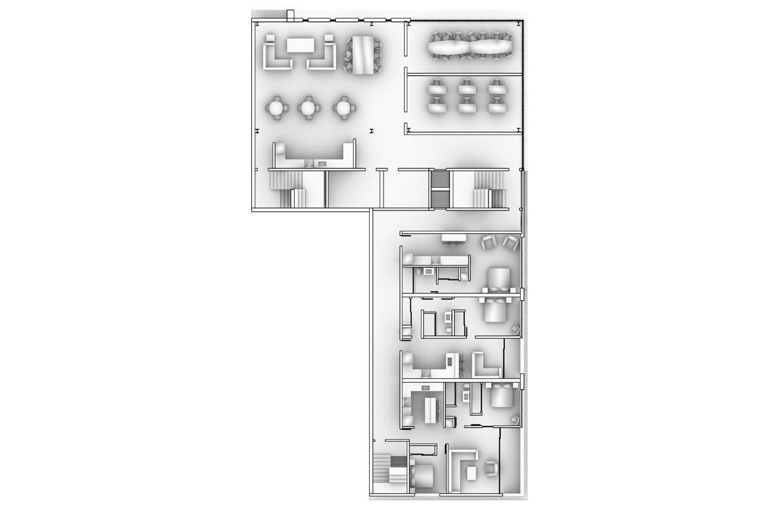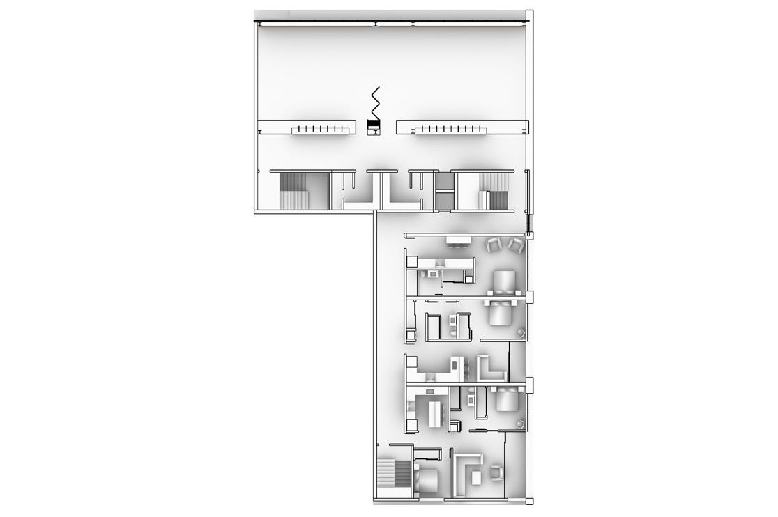 The patron experience is central to the design, starting by capturing guest from the street, plaza, or cityscape. Upon entering, guests are greeted in the first-floor lobby, which includes a ticket booth and coat room, setting the tone for their journey. The open staircase leads to the second floor, where patrons anticipate the performance, with a glimpse into the design shop and the outline of the black box theater. The third floor houses the exclusive Gansevoort Theater, where patrons immerse themselves in the show. Afterward, the fourth floor provides space for reflection, hosting a postshow lobby where guests can meet the actors and discuss the performance.