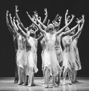 “Ronald K. Brown’s spellbinding Grace is a fervent tour-de-force depicting individuals on a journey to the promised land... As in many of Brown’s works, the movement alternates fluidly between extremes, with eruptions of power coupled with lightness. A serene solo for an angel-like figure in white gives way to fireball intensity as 12 dancers resembling contemporary warriors execute Brown’s whirling, pounding choreography—arms and legs slicing the air and fingers pointing to the sky.”