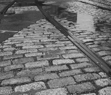 The use of light stone materials reflects the district’s industrial past, while black panels symbolize the Black Box Theater and honor the area’s industrial roots.