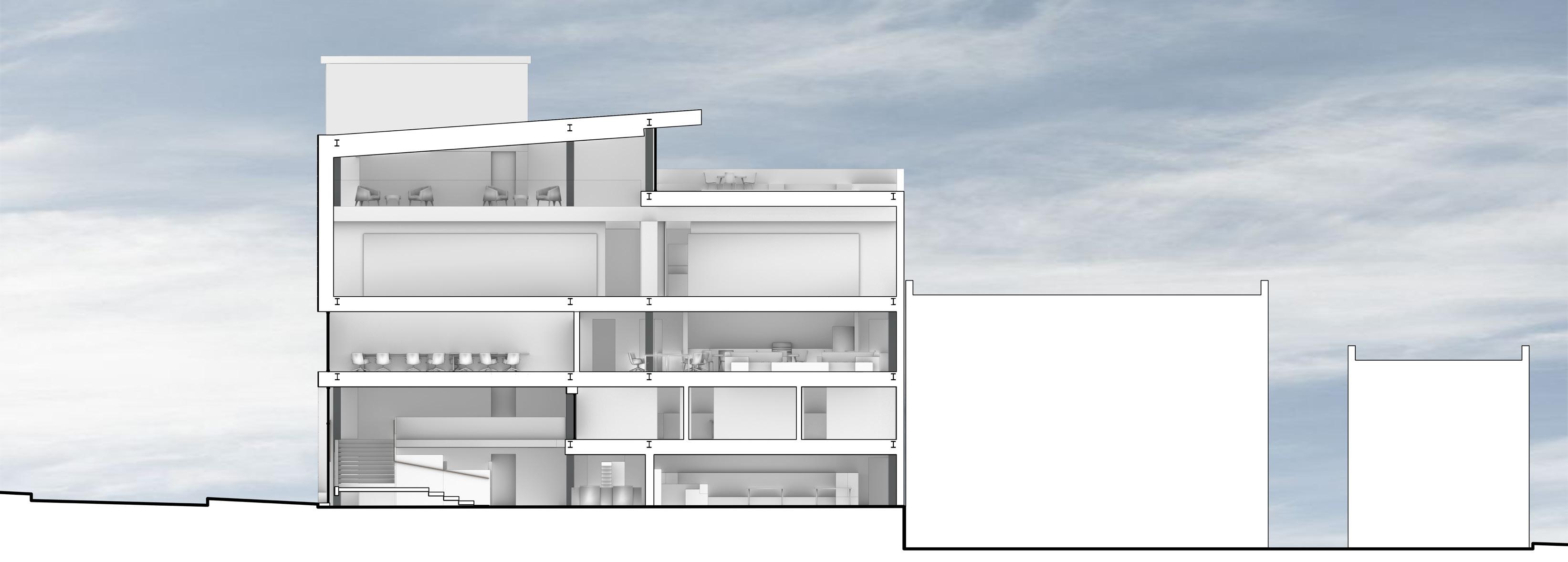 Resembling the building’s form, the cistern is positioned directly beneath the floor slab.