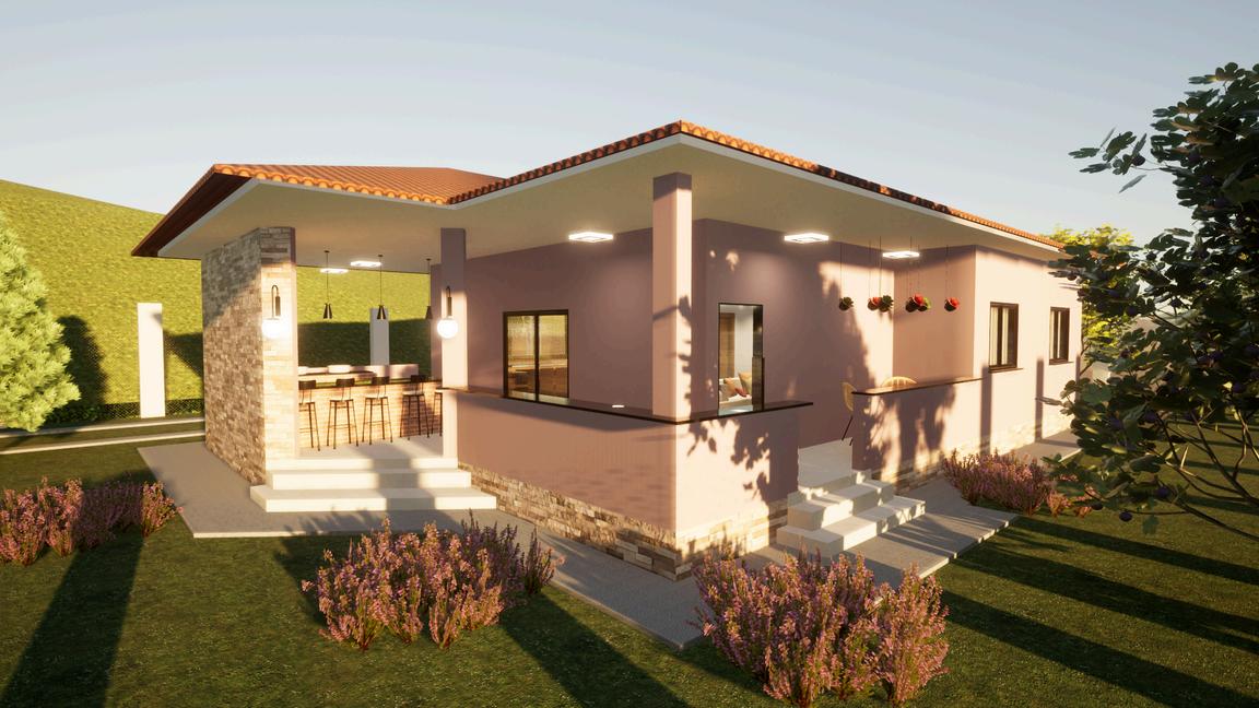 Este projeto combina elementos modernos com a essência da vida campestre, buscando harmonizar conforto e funcionalidade com a beleza natural do ambiente. Sua fachada reflete uma estética contemporânea, utilizando cores e grandes esquadrias de vidro de forma que se integre mas também que se destaque no meio rural. Os espaços internos foram planejados para maximizar a luz natural e as vistas do campo, assim a planta é projetada para facilitar a convivência familiar, com espaços integrados como sala de estar, cozinha e área gourmet. O paisagismo complementa a arquitetura, convidando os moradores a desfrutar da serenidade da zona rural, assim a casa é um refúgio contemporâneo que preserva a simplicidade e autenticidade da vida no campo.