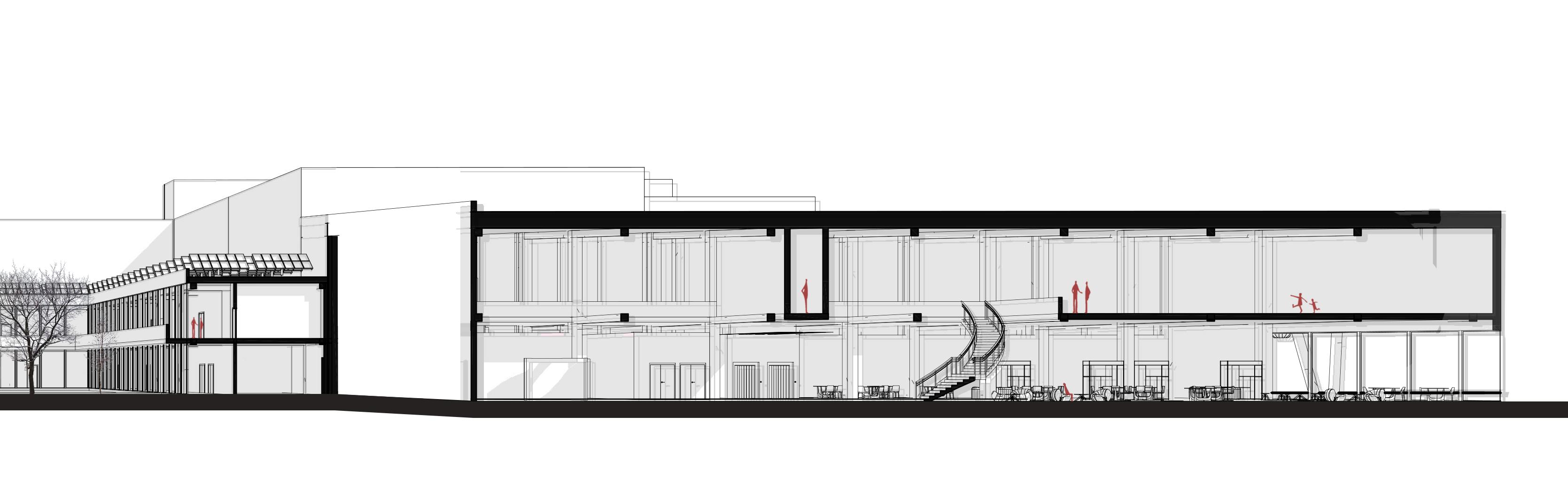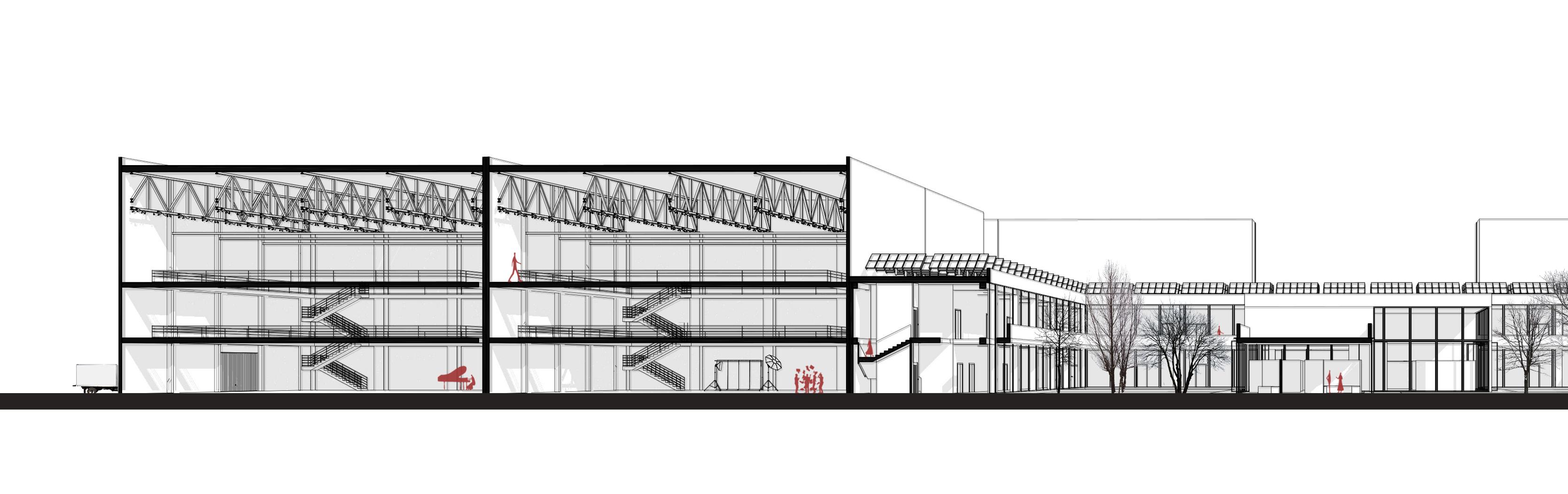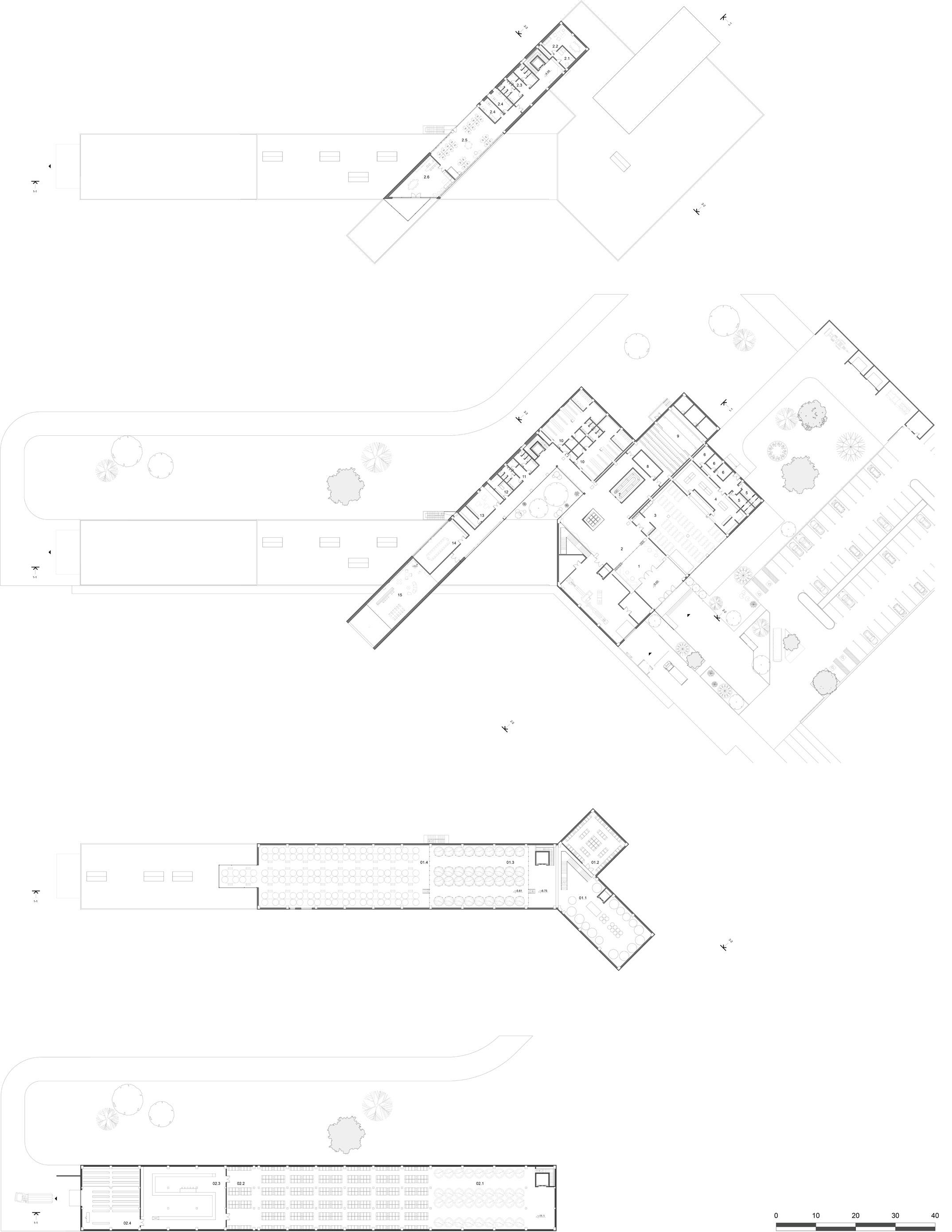 The building consists of three main functional areas: