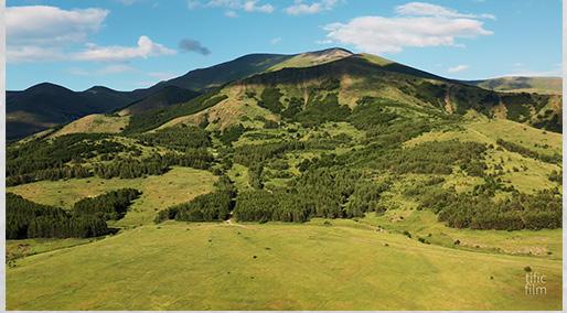 The northern part is planted with coniferous evergreen trees and low vegetation, and the southern part with fruit trees.