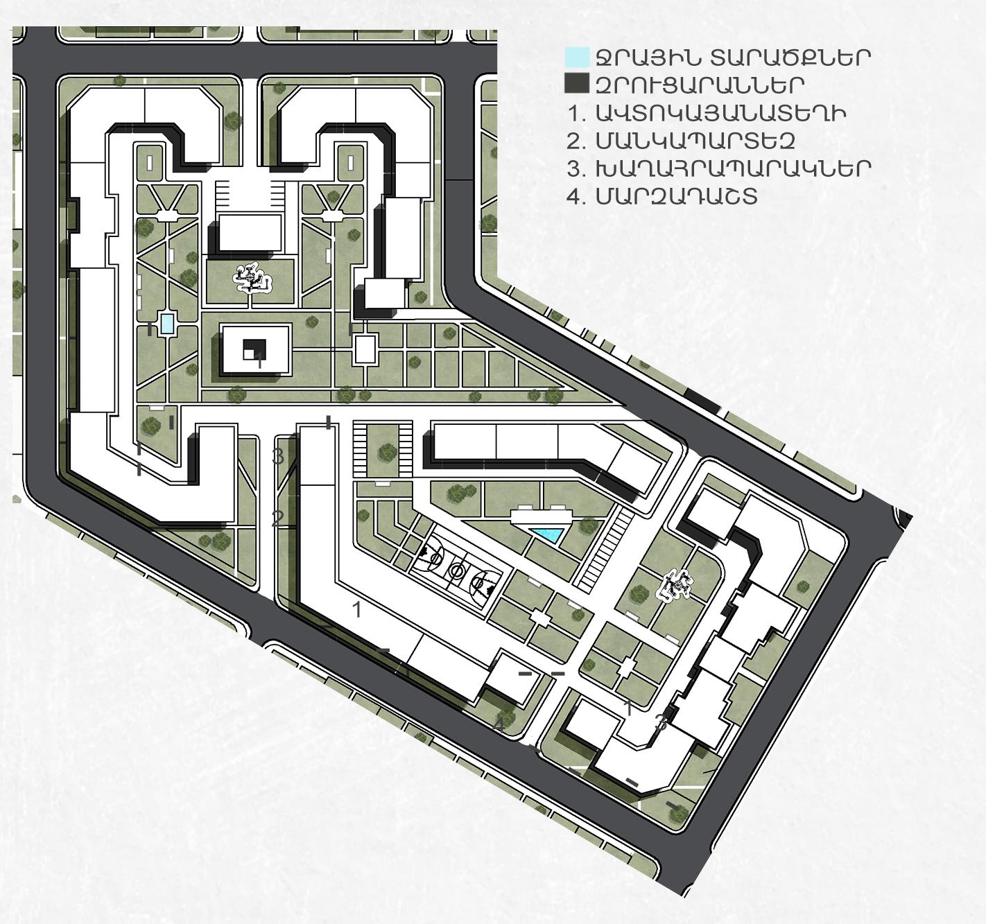 The site occupies around 30 hectares area, most of which is now abandoned and in bad condition. The initial idea was to reuse and refurbish the existing buildings, however a visit to both the site and current TV studios in Armenia proved that it would not only be more expensive than actually demolishing and rebuilding, but also meaningless since they were build during USSR for outdated standards (including both filming and construction elements). So, after some research, it was decided to demolish them and build a new center, which would be easier to adapt to newer technologies even decades later.