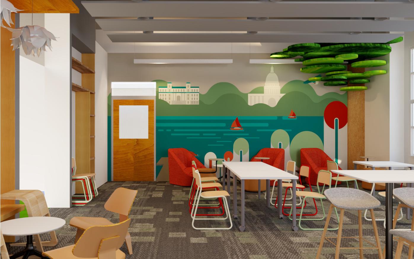 Beginning in 2018, Herman Miller has hosted a Big 10 Design Competition, which asks students to use design thinking and research to redesign a room on campus. Spending months going through the design thinking process and holding workshops to gain user feedback, we designed a space that focused on rejuvination, community, and discovery. To convey these topics to the users, I designed these murals that portray our themes in an exciting and stylized manner.