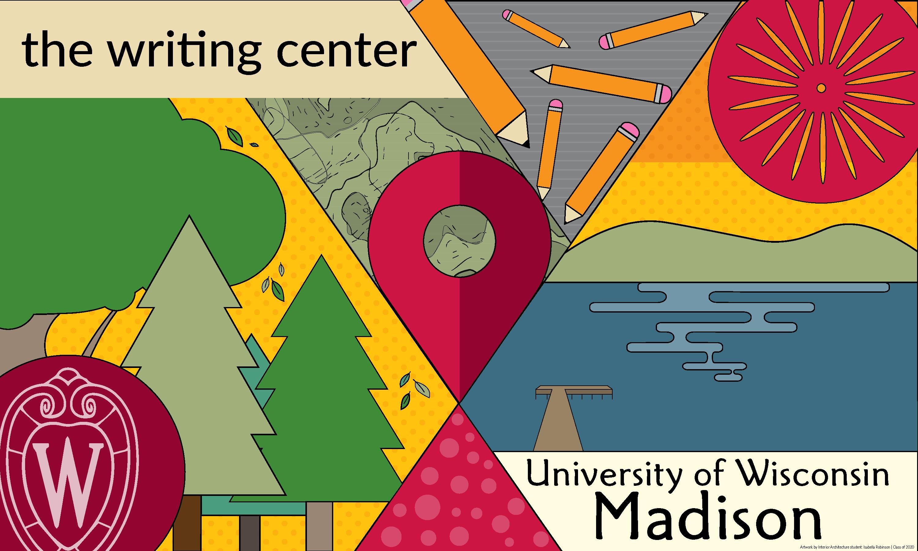 The UW Writing Center is a place for students to come for assistance with writing assignments and various workshops. In order to make students feel more welcomed, I was given the opportunity to create two large murals that conveyed inclusitivity and discovery. Using ambiguous figures [below] and creating a landscape [above], I turned the writing center into a place of belonging and curiousity.
