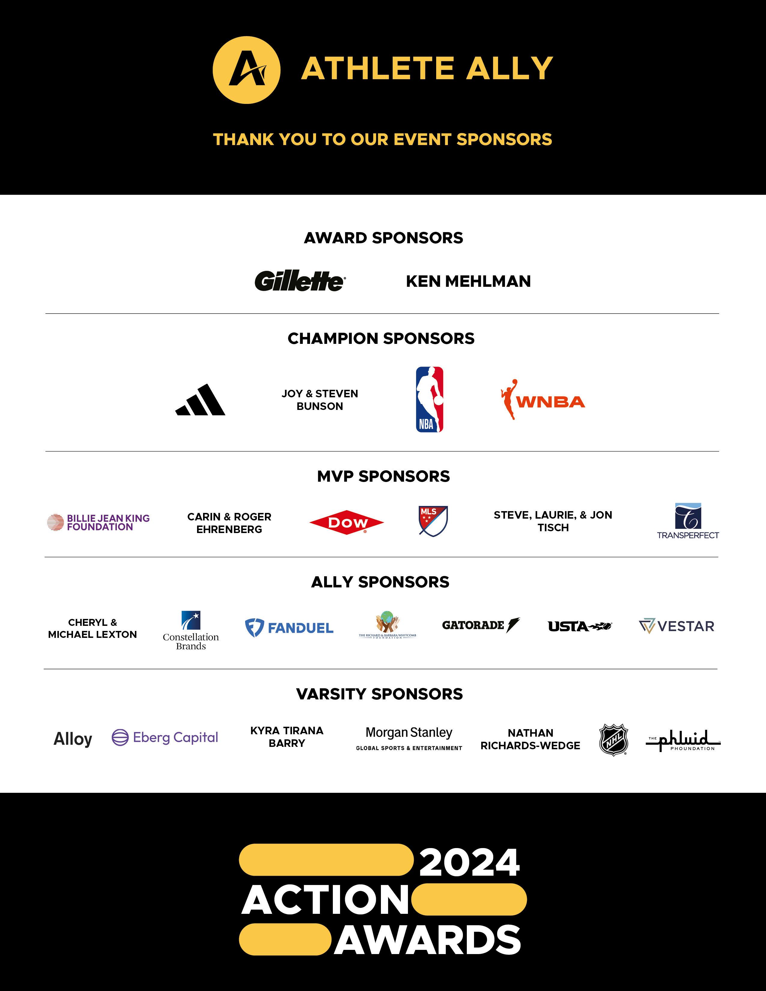 The Action Awards are Athlete Ally's annual awards celebration to honor LGBTQI+ athletes, allies, and organizations that are making a difference in LGBTQI+ inclusion on and off the field.