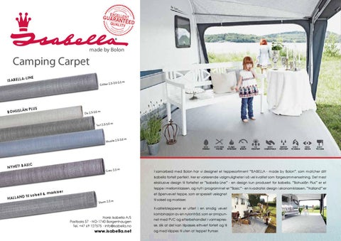 Quality, innovation and stylish design Our products combine the essence of quality, innovative design and utility. We pay attention to every little detail, because it is the details that make a difference when it comes to spending your precious free time. Our awnings are for living, and we see it as our pleasant duty to inspire those who use them to experience the joys of caravanning – to feel at one with nature, while having their own space to relax when they feel the need. A constant desire to challenge traditional norms and conventions has inspired us to put our efforts into researching and developing revolutionary awning concepts. Unlike many others, we are prepared to break with tradition – a quality that has enabled us to create awnings that stand out from the crowd. Awnings that are outstanding in terms of quality, design, utility and materials. Website: www.isabella.net