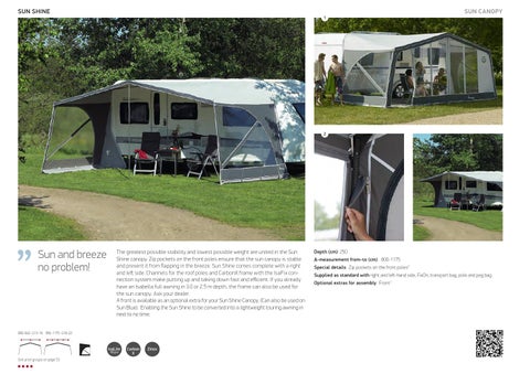 Depth (cm) 250 A-measurement from-to (cm) 800-1175 Special details Zip pockets on the front poles2 Supplied as standard with right and left-hand side, FixOn, transport bag, pole and peg bag Optional extras for assembly Front1