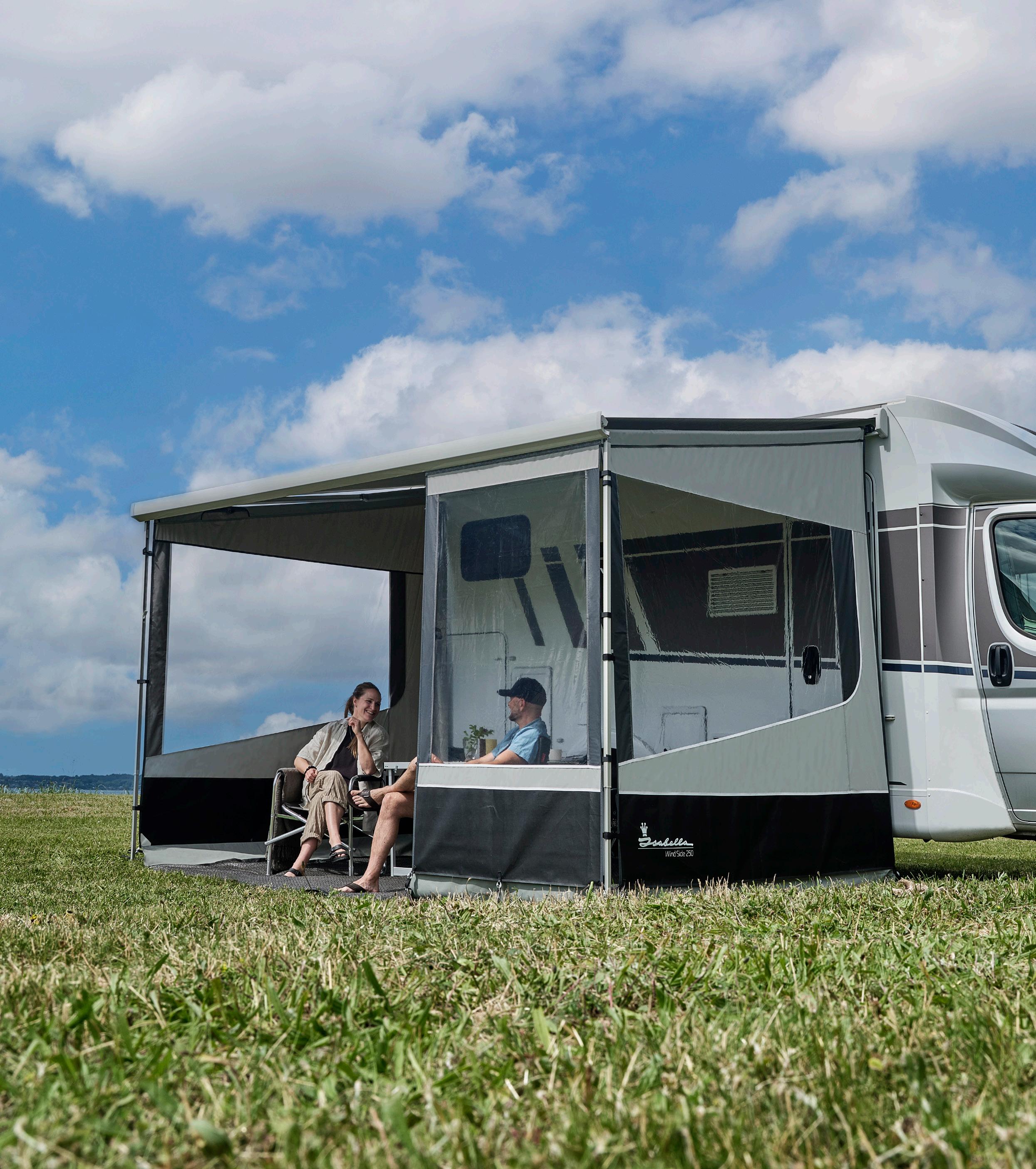 Buddy è una veranda resistente ed elegante progettata per i camper. È facile da montare e offre uno spazio abitativo extra all’esterno del veicolo.