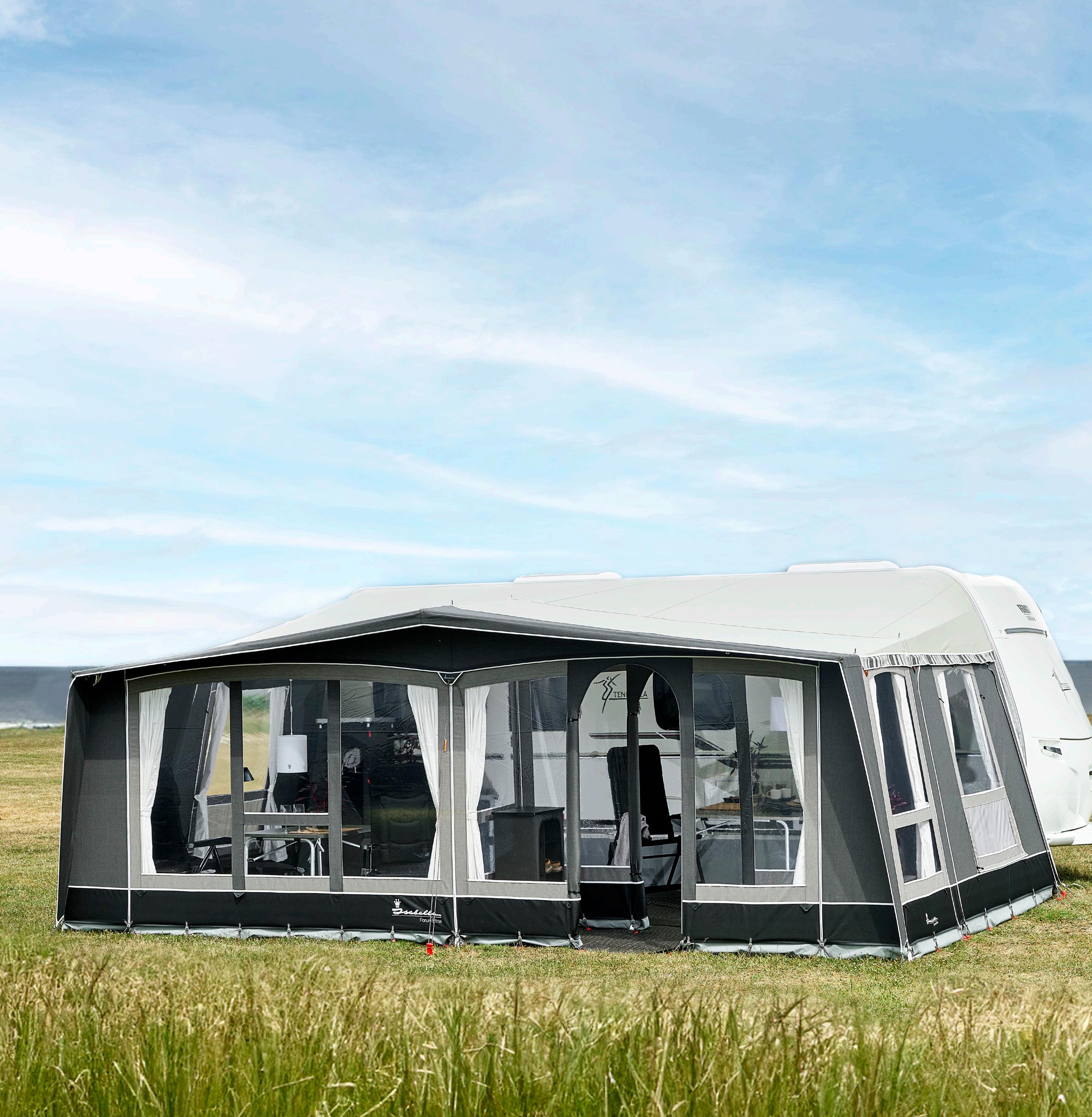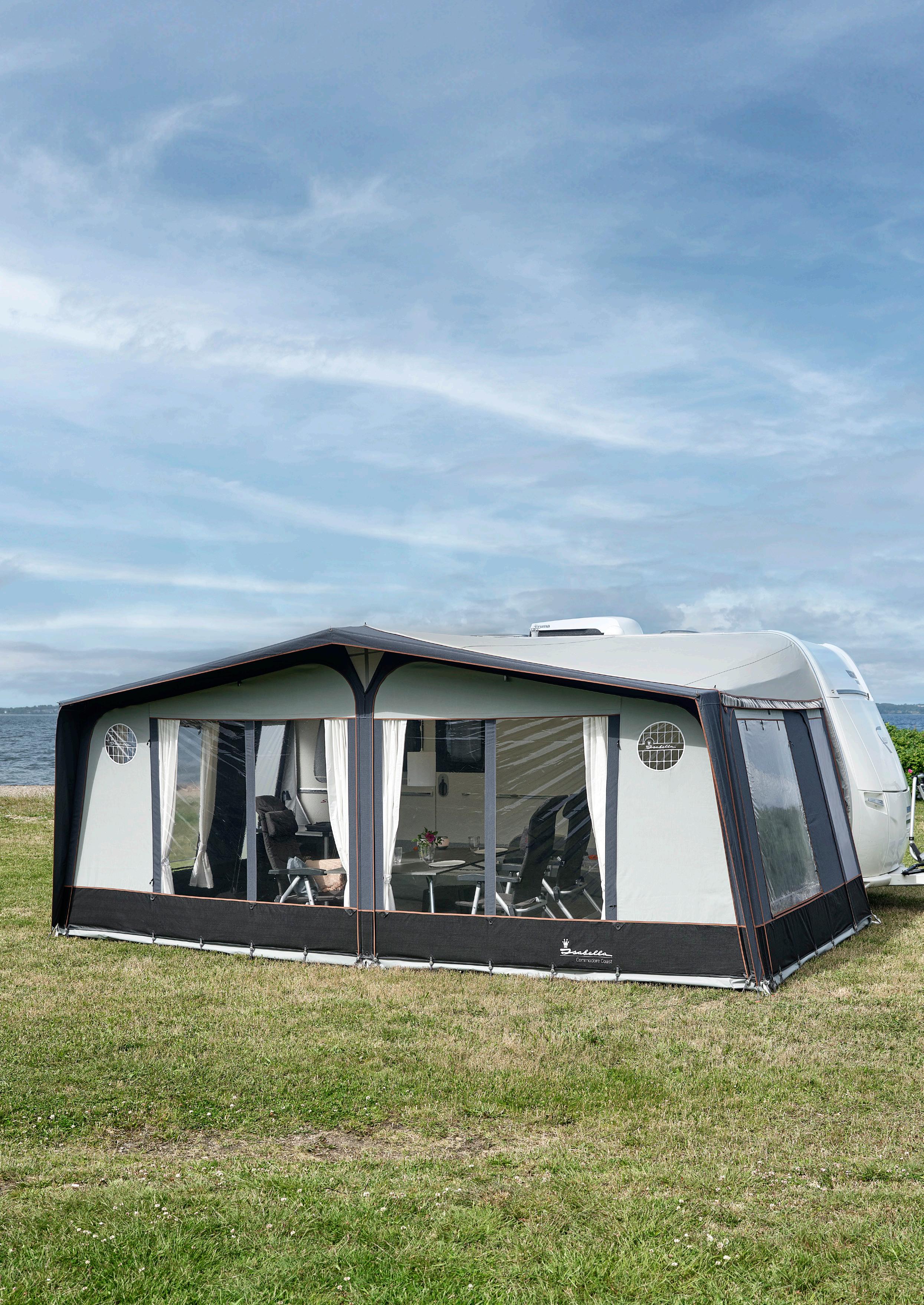 VILLA è per tutti coloro che non vogliono montare una veranda e smontarla ogni stagione. Anche se avete VILLA in una piazzola fissa, potete facilmente staccare la caravan e portarla in vacanza, perché VILLA è una tenda indipendente che può essere montata senza caravan (richiede l’acquisto di un pannello posteriore). VILLA è caratterizzata dal classico design scandinavo, dove estetica e praticità si incontrano. In questo modo si ottiene una veranda per tutto l’anno, realizzata con i materiali migliori e più resistenti del mercato, che offre la stabilità e la sicurezza di un’autovettura.