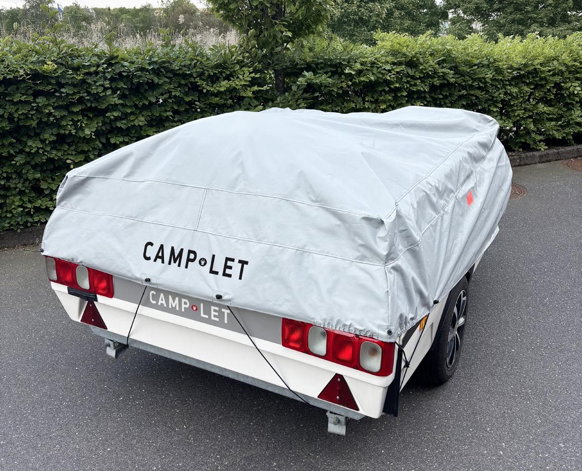 Dit model is ideaal als je een imperiaal en extra bagage bovenop je Camp-let hebt. De afdekzeilhoes is waterdicht en beschermt je Camp-let tegen regen en vuil tijdens transport. Het houdt ook stoelen, slaapzakken en andere uitrusting droog en schoon als je ze onder het dekzeil opbergt.