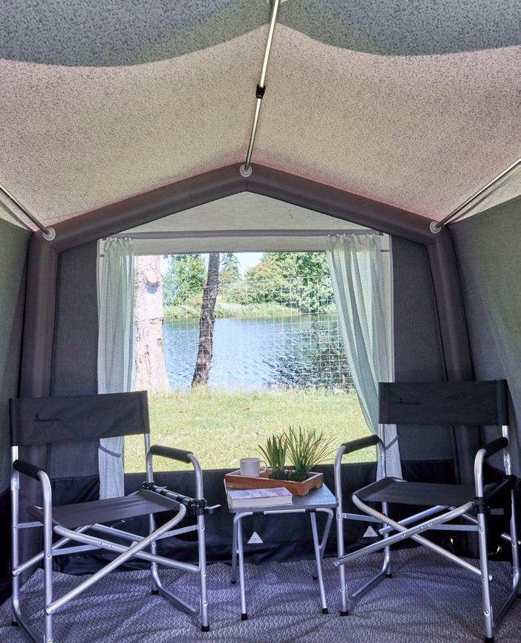 Commodore is a fusion of classic Isabella design and contemporary materials. Its depth of 3 metres with the choice of three types of frames are a major advantage, especially for those who alternate between permanent pitching and touring who also enjoy having plenty of space in the awning. Large panoramic windows make Commodore a pleasant place to be, with a unique inflow of light. For a pleasant indoor climate, the Commodore