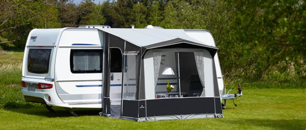 Leveres som standard med: Skruefrit FixOn beslag, gardiner Luxor Grey, understykke, standard hjulafdækning, opspændningsmateriale, telttaske, stang- og pløkpose.