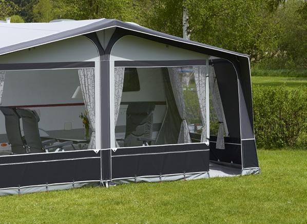 Det perfekte weekend-fortelt, der er nemt at stille op bl.a. på grund af det lette IXL-glasfiberstel. Forteltet slutter tæt i siden af campingvognen takket være de isyede skumpuder, støttestængerne og tilslutningsprofilerne.