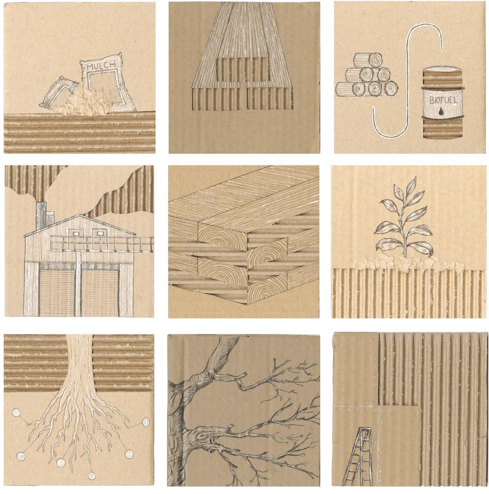 Highlights woodʼs afterlife, showing how it can be recycled or repurposed for sustainable second uses