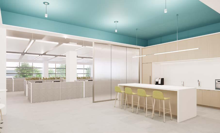 The employee pantry offers a space where all employees can eat and socialize. When possible, locate pantries in a centralized space on a floor for easy access but far enough from focused or quiet working spaces to not disturb others.