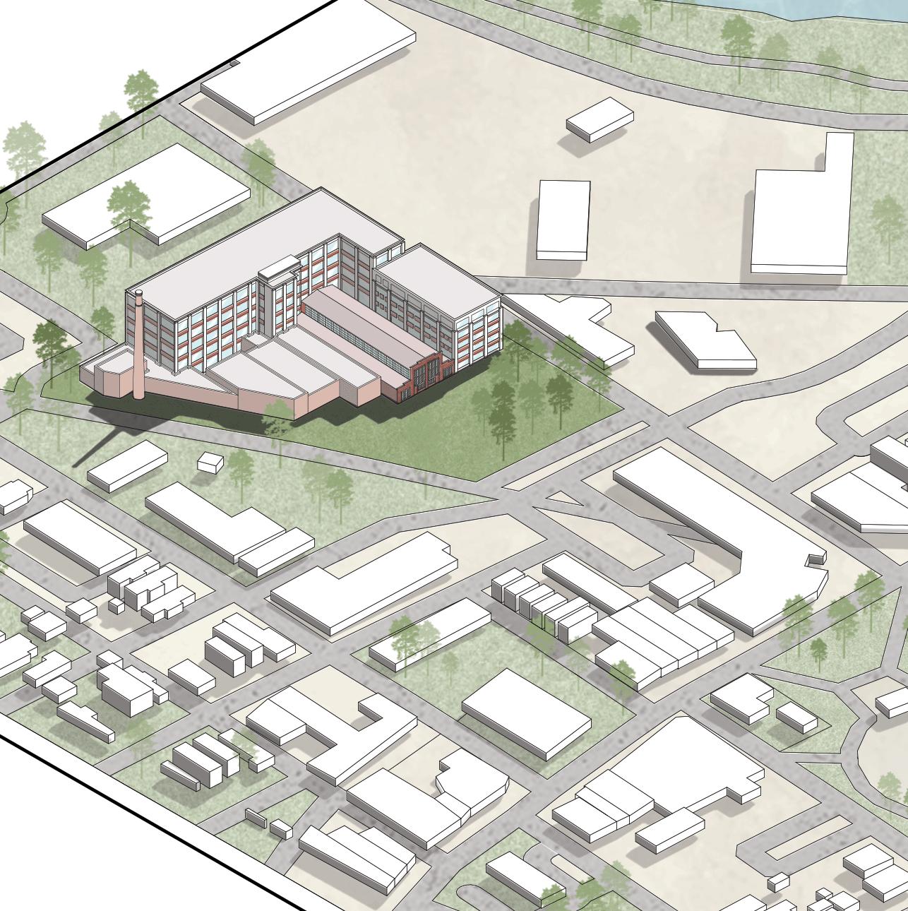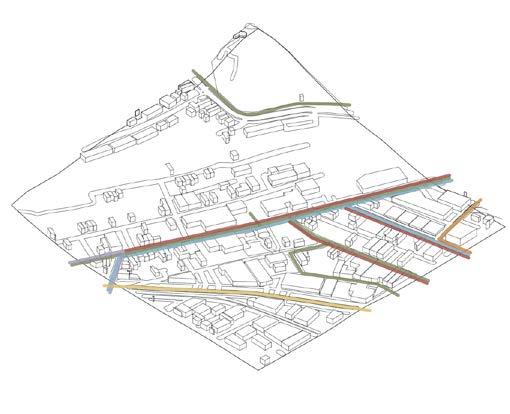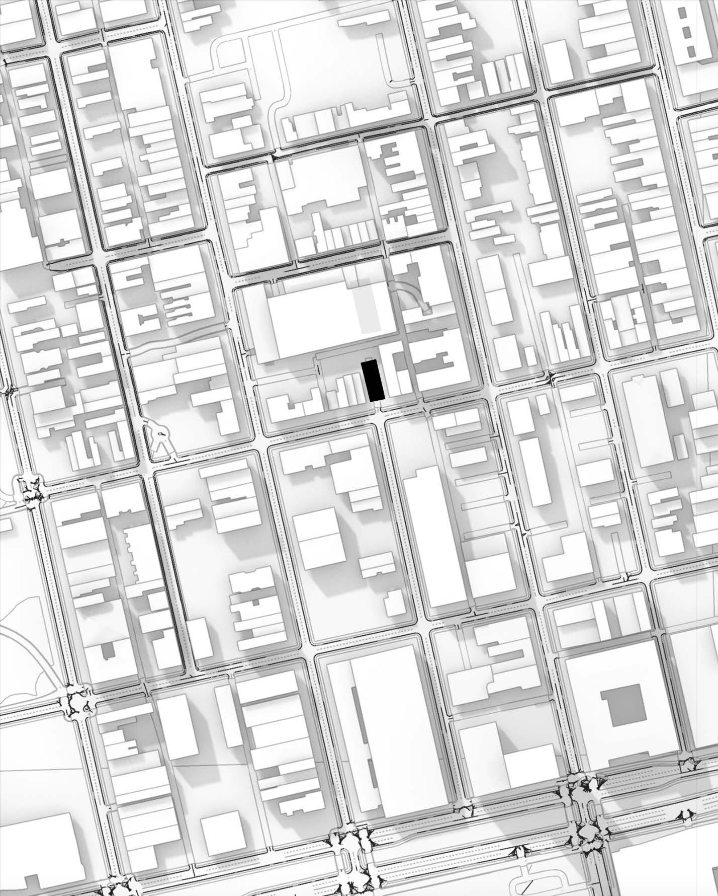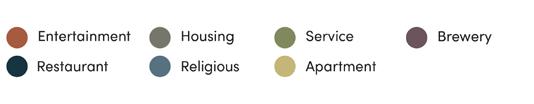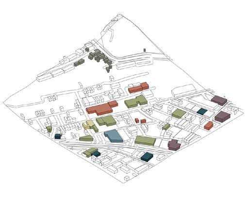 This diagram shows the different buildings surrounding the site, highlighting the diversity of the area