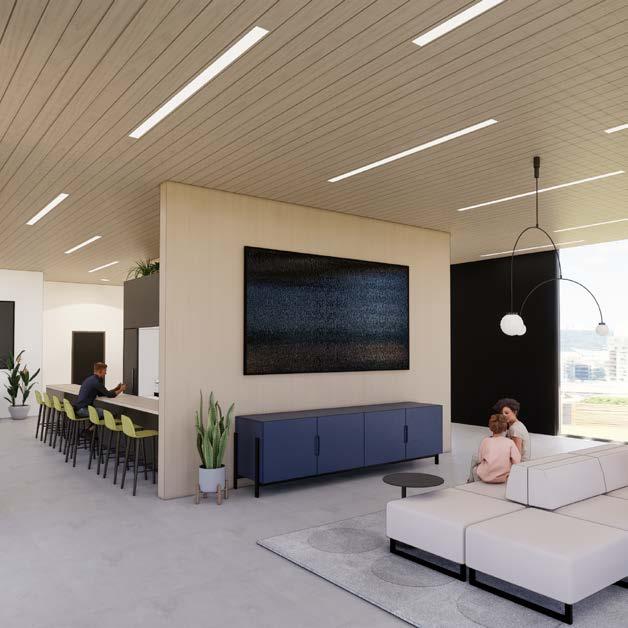 This is the main lobby level. This features a reception, lounge and dining space, serving as the main hub of the building