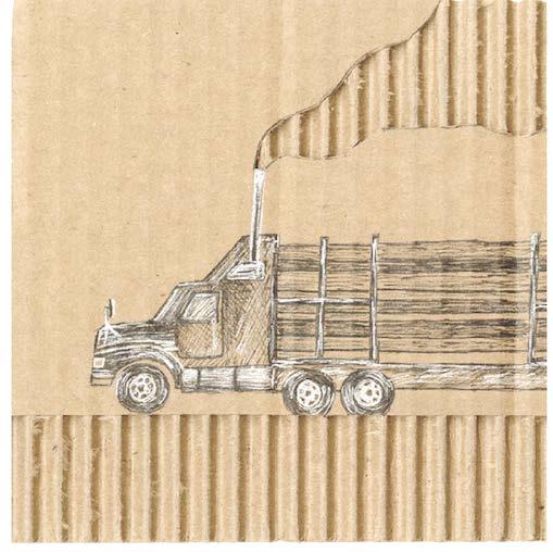 Suspended beams illustrate the board footage from a single Douglas Fir, showing timberʼs scale and construction potential