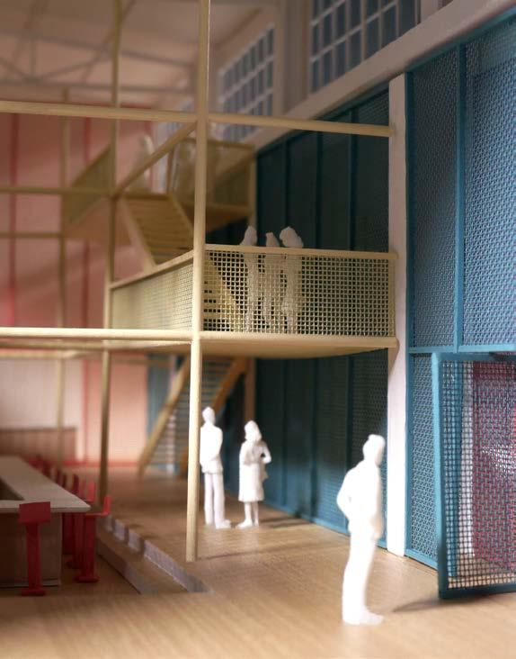 This model was built beam by beam using materials such as wood, perforated metal, and museum board. Throughout the process, I experimented with spray paint application, particularly how it interacts with perforated metal. I also explored layering painted metals to observe how overlapping hues create new color effects
