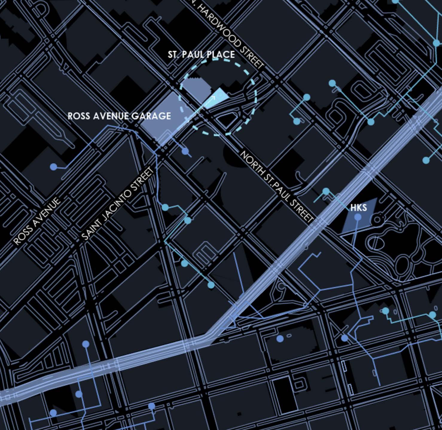 Located at San Jacinto and St. Paul Streets in downtown Dallas, the site offers high visibility, pedestrian access, and a dynamic mix of culture, commerce, and infrastructure, an ideal setting to explore the intersection of technology, architecture, and public experience. Within this context, our work investigates AI-driven spatial storytelling engines, automation scripts for responsive environments, generative form-finding linked to visitor interaction patterns, and data-driven emotion mapping for visitor journey design.