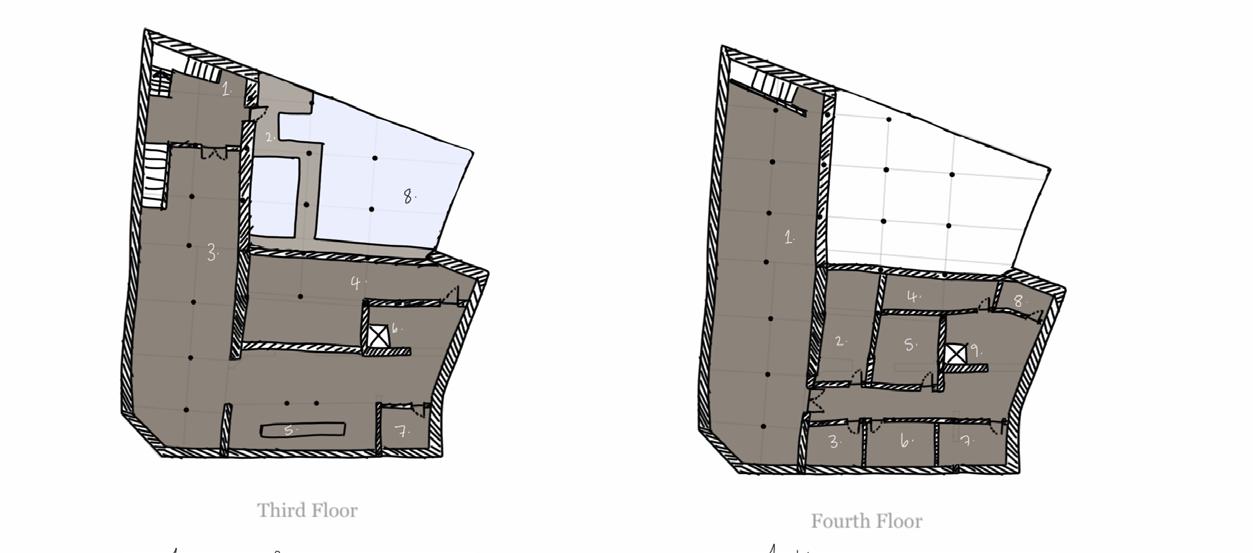 BELFAST TELEGRAPH BUILDING ADAPTIVE REUSE INITIAL SKETCH PLANS AND CONCEPT SKETCH PROCREATE/PEN