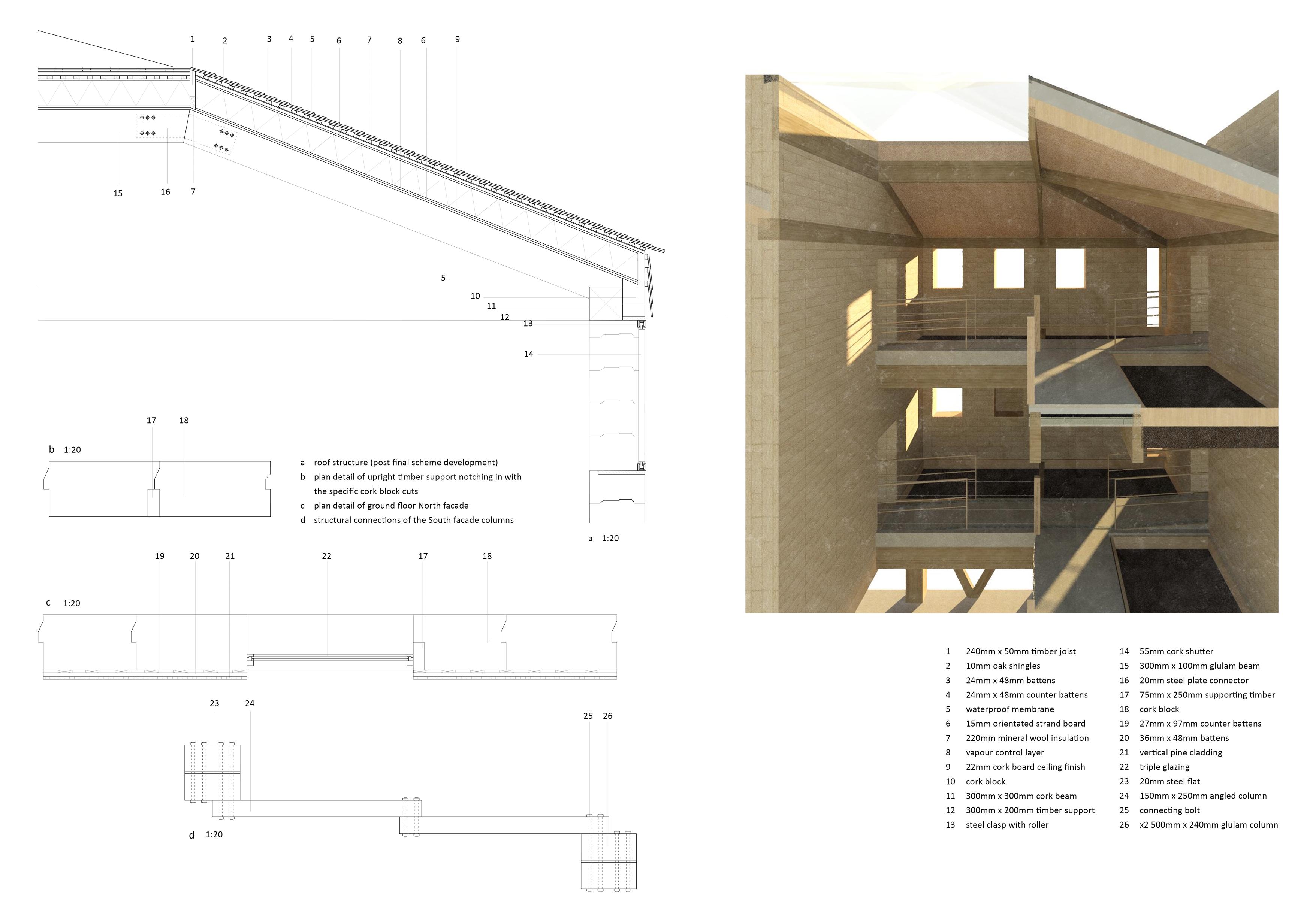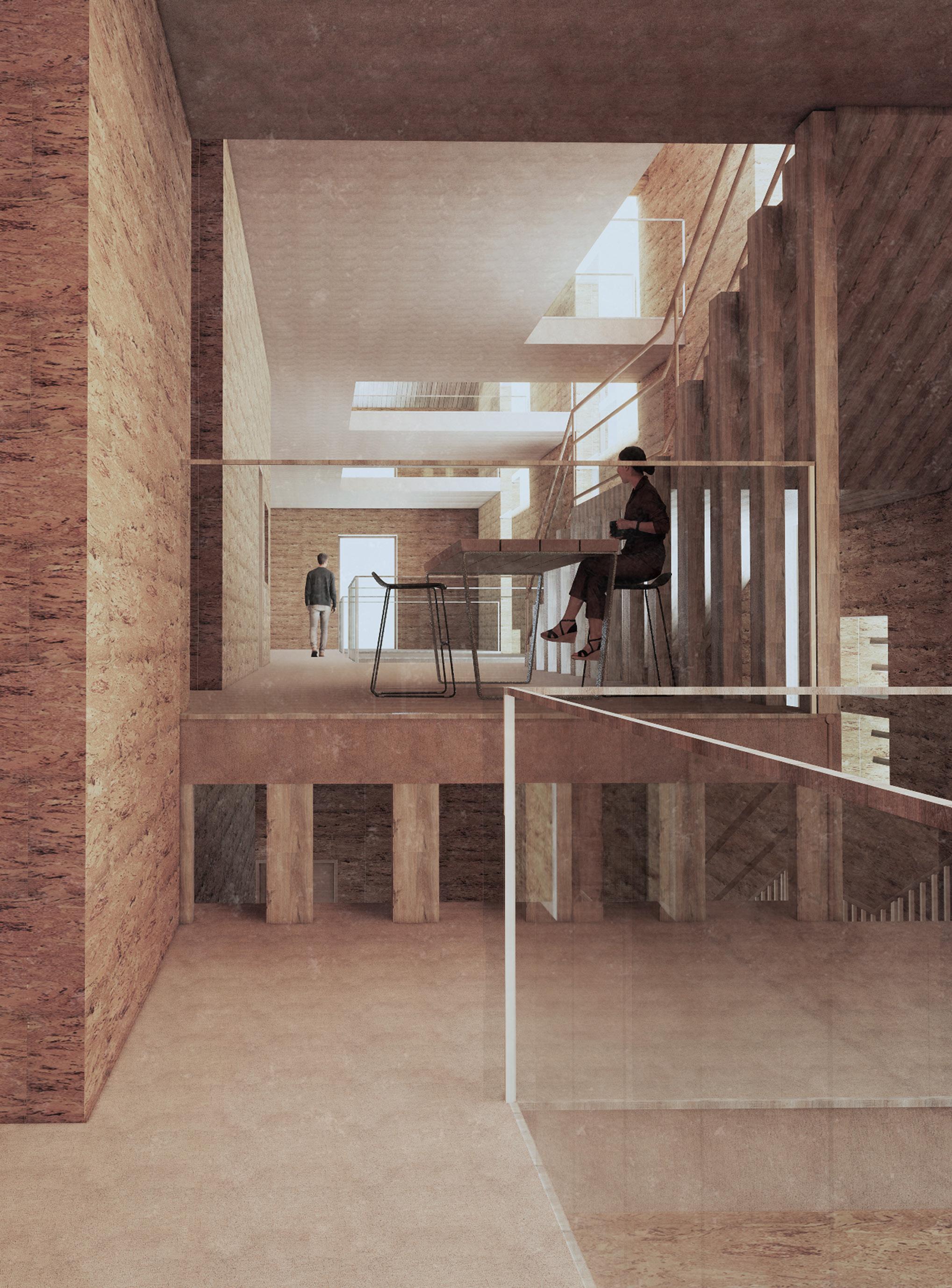 ‘The Planting Sanctuary’ is a museum intervention within the heart of Bristol by the wharf. The museum channels sustainable design notably through its solid cork construction. Spatial decisions and gradual level changes draw visitors into and upwards through the museum so that the entirety of the exhibitions are experienced in a flowing, effortless way.