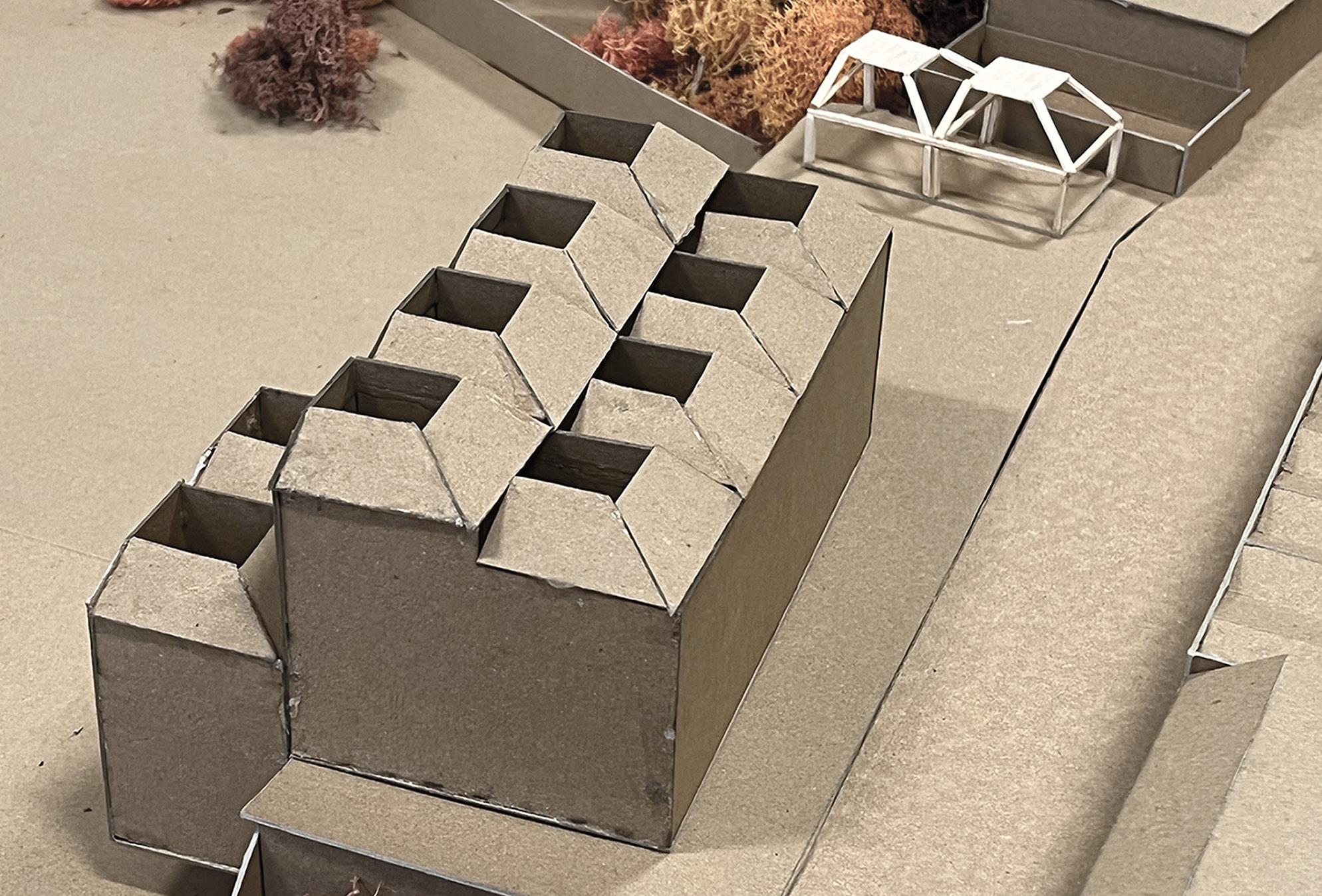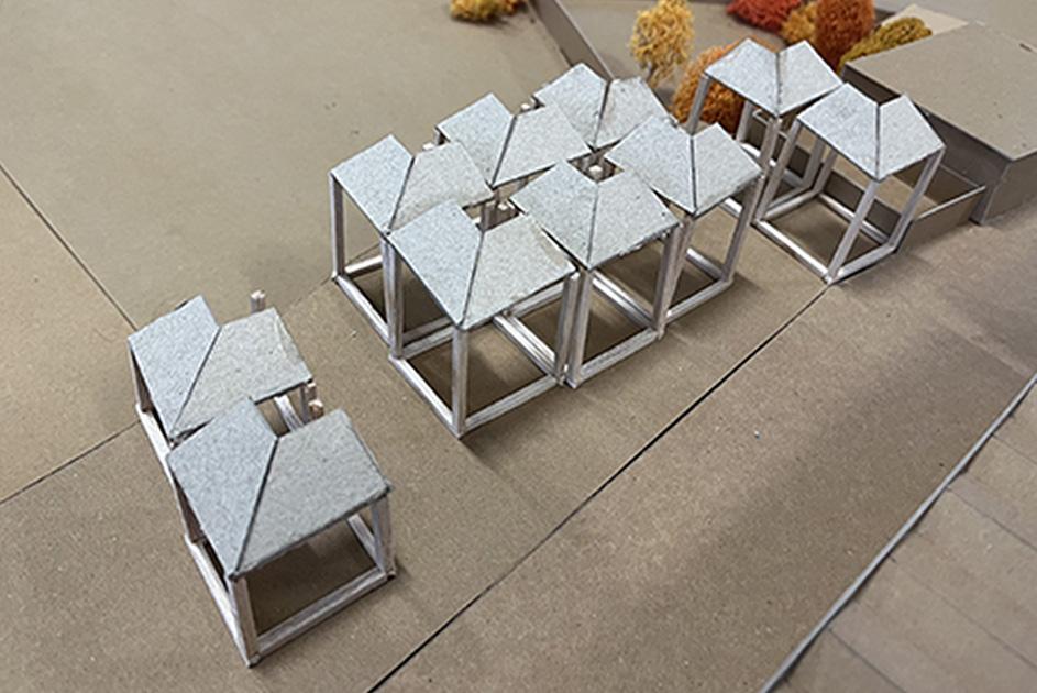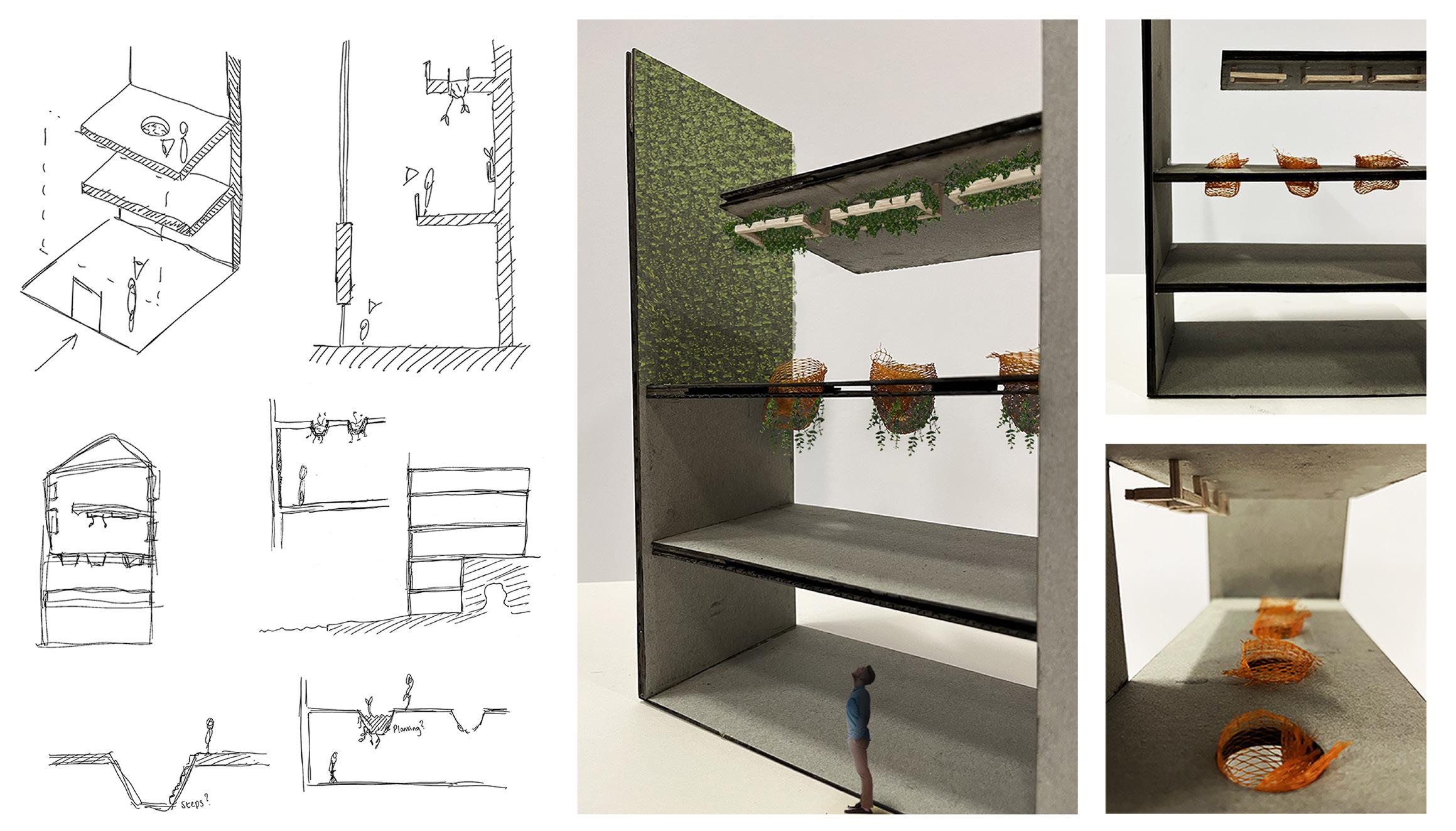 THE PLANTING SANCTUARY CONCEPTUAL SKETCHES AND MODEL PEN/CARD/BALSA/ONION BAG/PHOTOSHOP