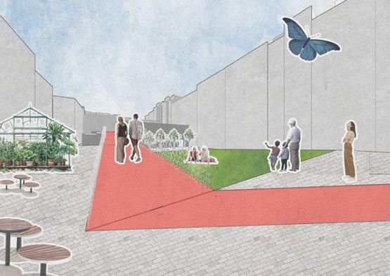 My main goal was to connect these 4 areas. It was dangerous to cross the tracks yet too far away to go to the tunnels on either side of the site to cross over. Establishing the connections are one thing but giving the residents a reason to stay was another important thing that needed to be implemented.