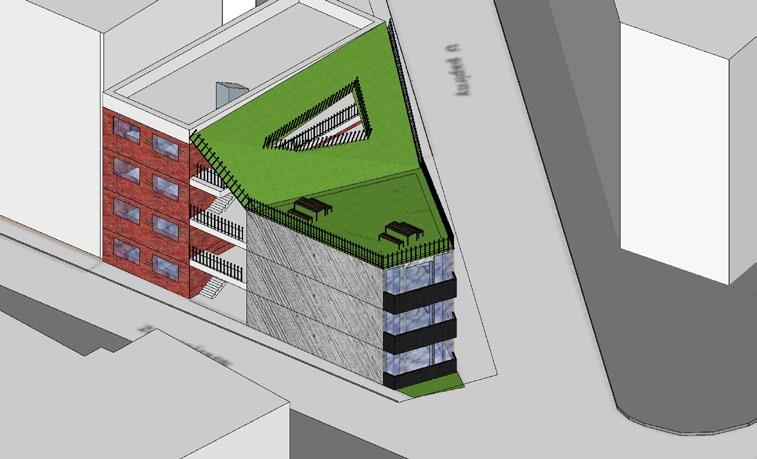 the ground level up to the fourth level on the south side of the site. Some of the rooms meetings, individual work study, simple kitchen, and then for different small businesses like.