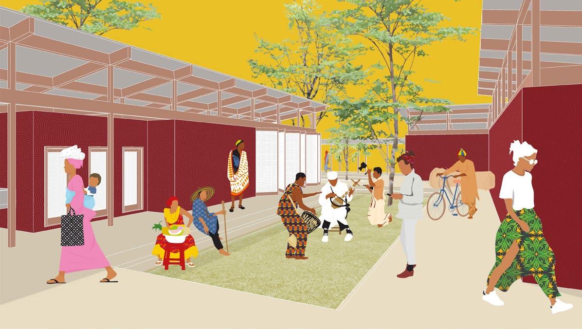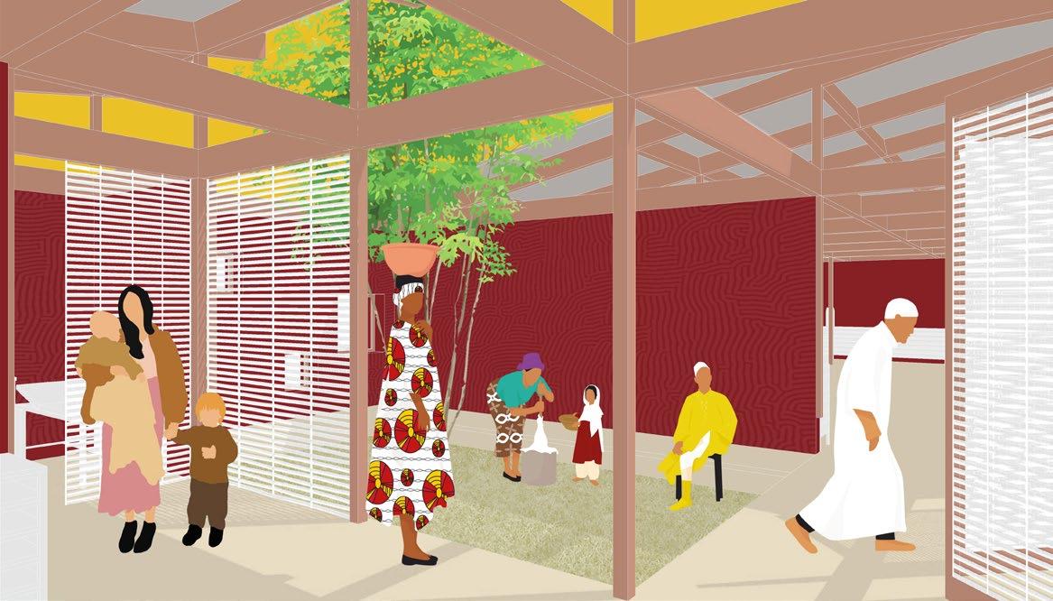 Our design creates a space that acts as a catalyst between the indoor and the outdoor movements of the people. For the revitalization of the community who has been affected by crises, the project is designed to allow expansion, such as building houses and schools connected to the central EOC(emergency operations center) by the courtyards which build a pattern that the community can grow organically from. Rather than combining all functions under one roof, we decided to allow individual moments and activities to occur throughout the entire EOC. The placement of each building allows close proximity but also a literal center to evolve, encouraging and encompassing the gatherings that will naturally take place in the camp.